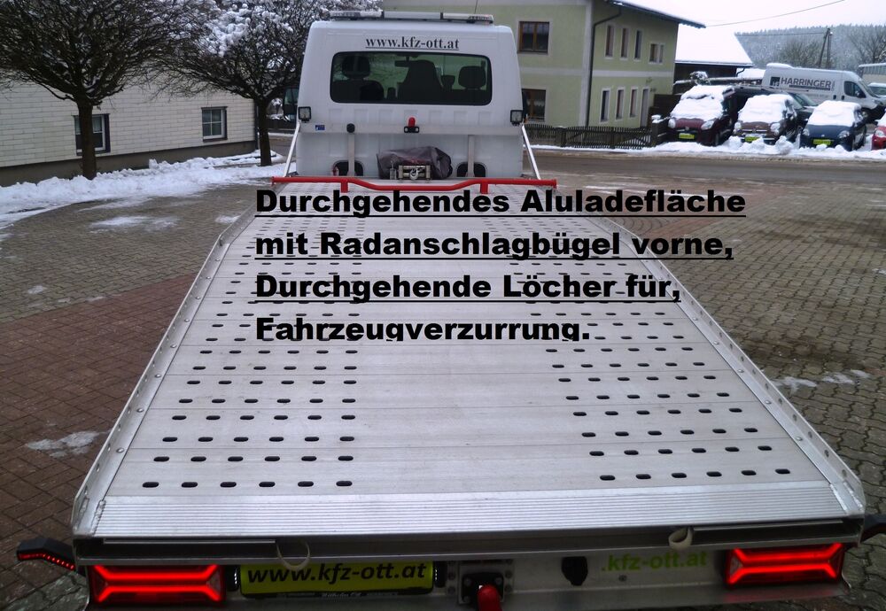 Zugvorrichtung am Aufbau, Radstopper vorne zum verstellen, durchgehende Löcher zur Verzurrung der Fahrzeuge.