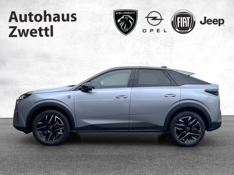 12V-Anschlüsse (x3: Mittelkonsole, im hinteren Teil der Mittelkonsole und Kofferraum), 19""-Leichtmetallfelgen BREDA, zweifarbig, 2 USB-C-Anschlüsse hinten (Laden), 2 USB-C-Anschlüsse vorn, 2-Wege-Lendenwirbelstütze manuell, für Fahrersitz, 3D LED-Rückleuchten mit 3 Krallen, 4 einziehbare Haltegriffe, 6 Airbags, 6 Lautsprecher (2 Tweeters und 2 Woofers vorn, 2 Lautsprecher hinten), ABS (Anti-Blockiersystem), Active Safety Brake mit Distance Alert, Außenspiegel elektrisch verstell-, beheiz- und anklappbar mit LED-Zugangsbeleuchtung, Automatisches Einschalten der Frontscheibenwischer, Berganfahrhilfe, Dachhimmel in Schwarz, Drive Assist, Einparkhilfe hinten und vorne, akustisch und visuell, ESP (Elektronisches Stabilitätsprogramm), Fahrer- und Beifahrersitz höhenverstellbar, Frontkollisionswarner, Geschwindigkeitsregelanlage, Heckklappe sensorgesteuert, Innenspiegel automatisch abblendend, ISOFIX - Kindersitzbefestigungssystem (3-Punkt, Top Tether) an den äußeren Rücksitzen, Keyless-System Plus (schlüsselloses Zugangs- und Startsystem), Klimaautomatik 2-Zonen, Kompaktes und Multifunktions - Lederlenkrad mit GT - Schriftzug, Lenkradheizung, Müdigkeitswarner mit Müdigkeitserkennung, Natürliche Sprachsteuerung OK PEUGEOT für Navigation, Telefon, Klimaanlage und Media, Pack Safety Plus, PEUGEOT Connect SOS & Assistance, Peugeot i-Cockpit Panoramic mit gebogenem und Schwebendem 21-Zoll-HD-Bildschirm, PEUGEOT i-Connect Advanced, PEUGEOT i-Toggles, PEUGEOT Pixel LED-Scheinwerfer mit 3-Krallen-Tagfahrlicht, Reifendruckkontrolle (indirekte), Rückfahrkamera mit 180°-Umgebungsansicht, Servolenkung, Spurhalteassistent mit Lenkeingriff, Tempomat, Traktionskontrolle, Verkehrsschilderkennung, Vernetzte 3D-Navigation, Visiopark 1, Vordersitze beheizbar, ZentralverriegelungSofort verfügbar!