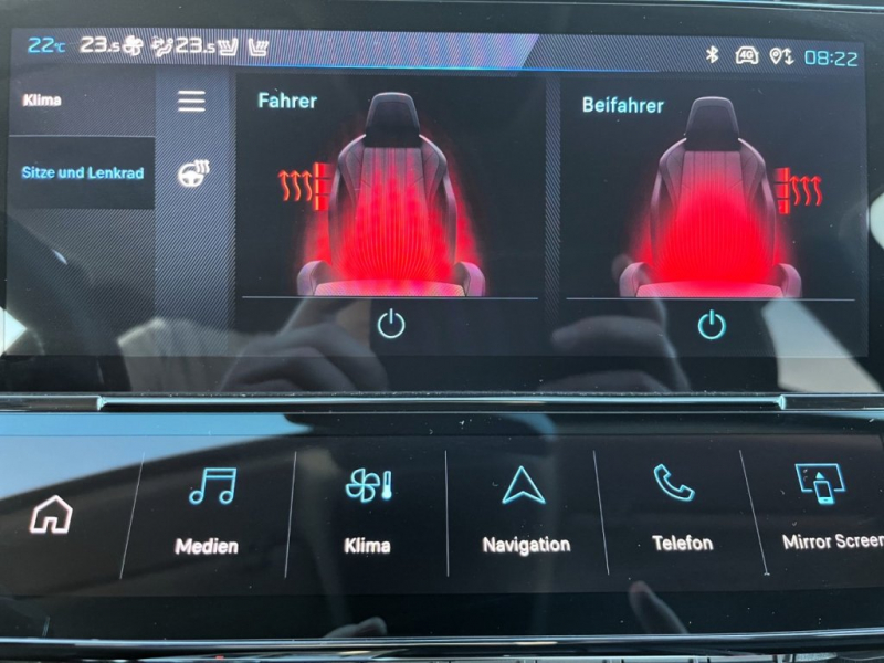 12-Volt-Anschluss vorne, 2 USB-C-Anschlüsse vorn, 2-Zonen-Klimaautomatik, 4 Haltegriffe (2 vorne und 2 hinten), Active Safety Brake Plus, Adaptiver Geschwindigkeitsregler mit Stop&Go-Funktion, Akustische Windschutzscheibe, Antiblockiersystem (ABS), Außenspiegel elektrisch verstell-, beheiz- und anklappbar, mit LED - Zugangsbeleuchtung, Außenspiegelgehäuse Perla Nera Schwarz, Dekoreinlagen aus Stoff für Türverkleidungen und Armaturenbrett, Dreipunkt-Sicherheitsgurte vorne, Dynamische Stabilitätskontrolle (ESP) mit elektronischer Antriebsschlupfregelung (ASR), Eco-LED-Scheinwerfer, Elektrische Fensterheber vorne und hinten, mit Schnellsenktaste und Einklemmschutz, Elektrische Parkbremse, Elektrische Servolenkung, Erweiterte Verkehrsschilderkennung, Fahrer- und Beifahrerairbag, Beifahrerairbag deaktivierbar, Seitenairbags vorne,, Fahrer- und Beifahrersitz höhenverstellbar, Fahrersitz mit manuell einstellbarer Lendenwirbelstütze, Fahrmodischalter ""ECO"" / ""Normal"" / ""Sport"", Fernlichtassistent, GARANTIE, Getriebe - Automatisiertes Schaltgetriebe 6-Gang, Heckscheibe beheizbar mit Zeitschaltung, Heckscheibe und Seitenscheiben hinten stärker getönt, Heckschürze in hochglänzendem Schwarz, Innenspiegel automatisch abblendend, ISOFIX - Kindersitzbefestigungssystem an den äußeren Sitzen hinten, Keyless Startsystem, Kindersicherung, Kühlergrill in Schwarz mit Chromapplikationen, LED-Tagfahrlicht im neuen Peugeot-Design, Lenkrad in Höhe und Tiefe verstellbar, Lenkrad Leder, Licht- und Regensensor, Metallic-Lackierung Avatar Blau, Mirror Screen, CarPlay und Android Auto, Mittelarmlehne vorne, Müdigkeitswarner, Multifunktionaler Touchscreen mit 10""-HDFarbbildschirm, Multifunktions-Lenkrad, Peugeot i-Cockpit, Polster: Stoff / Kunstleder Falgo in Schwarz mit Ziernähten in Mint Grün, Reifendruckkontrolle, Rückfahrkamera mit 180°-Umgebungsansicht, Rücksitze: Dreipunkt-Sicherheitsgurte, Sicherheitsoptimierte Kopfstützen vorn, Spurhalteassistent, mit Lenkeingriff, Umklappbare RücksitFahrzeugnummer: 19080325