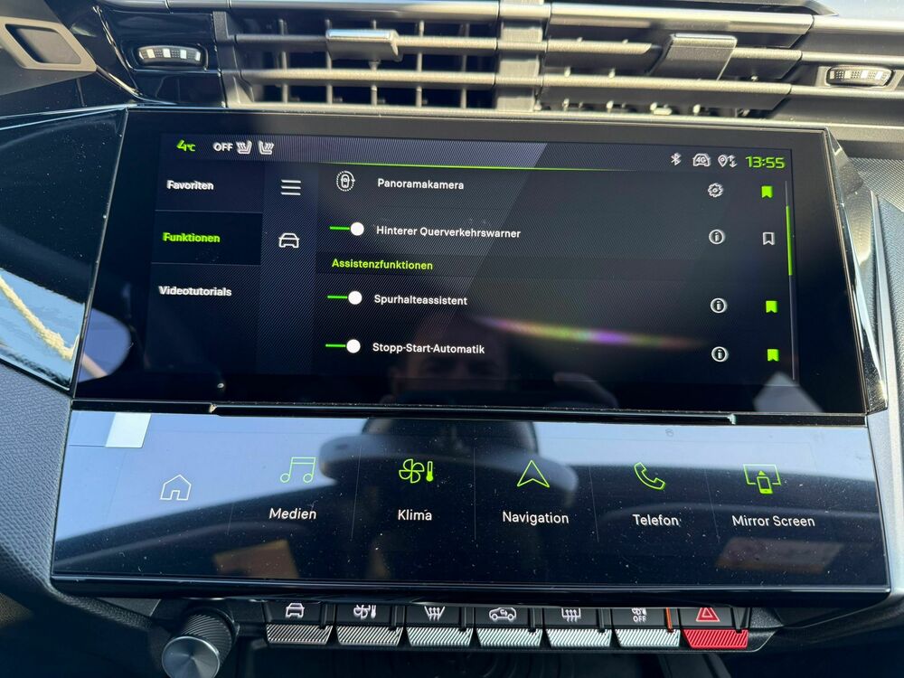 Auspuffblende (Chrom), Außenspiegel und Spiegelfuss in Perla-Nera-Schwarz, Dachhimmel schwarz, Drive-Assist-Paket, Fahrassistenz-System: Querverkehrs-Assistent Heck (Rear Cross Traffic Alert, RCTA), Durchladeeinrichtung (Mittelarmlehne hinten), Mittelarmlehne hinten, Einstiegsleisten mit Schriftzug (Aluminium-Design), Elektr. Bremskraftverteilung, Frontkamera, Fensterzierleisten schwarz glänzend, Frontscheibe Akustikglas, Frontscheibe Verbundglas, Fußmatten, Handschuhfach beleuchtet, Heckscheibe heizbar, Innenausstattung: Dekoreinlagen in Aluminium, Innenausstattung: Ziernähte farbig, Innenraumfilter: Aktivkohlefilter (Geruchsfilter), Kartentasche an Vordersitze, Kombiinstrument digital (10,0 Zoll), Kopfstützen hinten (3-fach), Kopfstützen vorn verstellbar, Lendenwirbelstütze Sitz vorn links, verstellbar, Audiobedienung am Lenkrad, Lenksäule (Lenkrad) verstellbar, Leseleuchten vorn und hinten, 2 Deckenleuchten hinten, Einschaltautomatik für Fahrlicht, Leuchtweitenregelung automatisch, Mobile Online Dienste Mirror Screen, Parkbremse elektrisch, Pedale Aluminium, Radstand 2675 mm, Schadstoffarm nach Abgasnorm Euro 6e, Sitze vorn höhenverstellbar, Sitz vorn links höhenverstellbar, Sitz vorn rechts höhenverstellbar, Sonnenblenden mit Spiegel (beleuchtet), Warnanlage für Sicherheitsgurte, Reifen-ReparaturkitFahrzeugbeschreibung