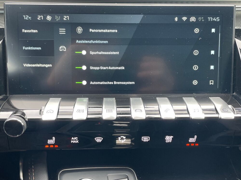 Aktive Motorhaube, Peugeot Connect-Box / SOS-Taste (Notruf für Lokalisierung Fahrzeug), USB-Schnittstelle, Auspuffblende (Chrom), Außenspiegel und Spiegelfuss in Perla-Nera-Schwarz, Bremsenergierückgewinnung, Dachhimmel schwarz, Drive-Assist-Paket Plus, Fahrassistenz-System: aktiver Spurpositionierungsassistent, Durchladeeinrichtung (Mittelarmlehne hinten), Mittelarmlehne hinten, Einparkhilfe akustisch, Einparkhilfe akustisch, Einstiegsleisten (Edelstahl - gebürstet), Elektr. Bremskraftverteilung, Frontkamera, Fensterrahmen / Zierleisten schwarz glänzend, Full-LED-Paket, Kühlergrill, Rahmen verchromt, Leuchtweitenregelung elektrisch, Blinkleuchten LED, Fußmatten, Fußraumleuchte vorn LED, Gepäckraum-Abtrennung (Netz), Gepäckraumabdeckung / Rollo, Getränkehalter, Gurtkraftbegrenzer, Gurtkraftbegrenzer hinten, Handschuhfach beleuchtet, Heckscheibe heizbar, Innenausstattung: Dekoreinlagen in Carbon-Optik, Innenleuchten LED, Innenraumfilter: Aktivkohlefilter (Geruchsfilter), Kartentasche an Vordersitze, Kombiinstrument digital, Komfortsitze vorn, Sitze vorn mit ausziehbarer Oberschenkelauflage, Lendenwirbelstütze elektrisch verstellbar, Kopfstützen hinten verstellbar, Kopfstützen vorn verstellbar, Audiobedienung am Lenkrad, Lenksäule (Lenkrad) verstellbar, Einschaltautomatik für Fahrlicht, Mobile Online Dienste Mirror Screen, Modellpflege, Multifunktionsanzeige mit Farbdisplay (DGT10CHD), Parkbremse elektrisch, Pedale Aluminium, Reifen-Reparaturkit, Schadstoffarm nach Abgasnorm Euro 6d, Sitzbezug / Polsterung: Alcantara / Kunstleder, Sitze vorn höhenverstellbar, Sitz vorn links höhenverstellbar, Sitz vorn rechts höhenverstellbar, Sonnenblenden mit Spiegel (beleuchtet), Steckdose (12V-Anschluß) im Koffer-/Laderaum, Steckdose (12V-Anschluß) in Mittelkonsole, Warnanlage für SicherheitsgurteFahrzeugbeschreibung