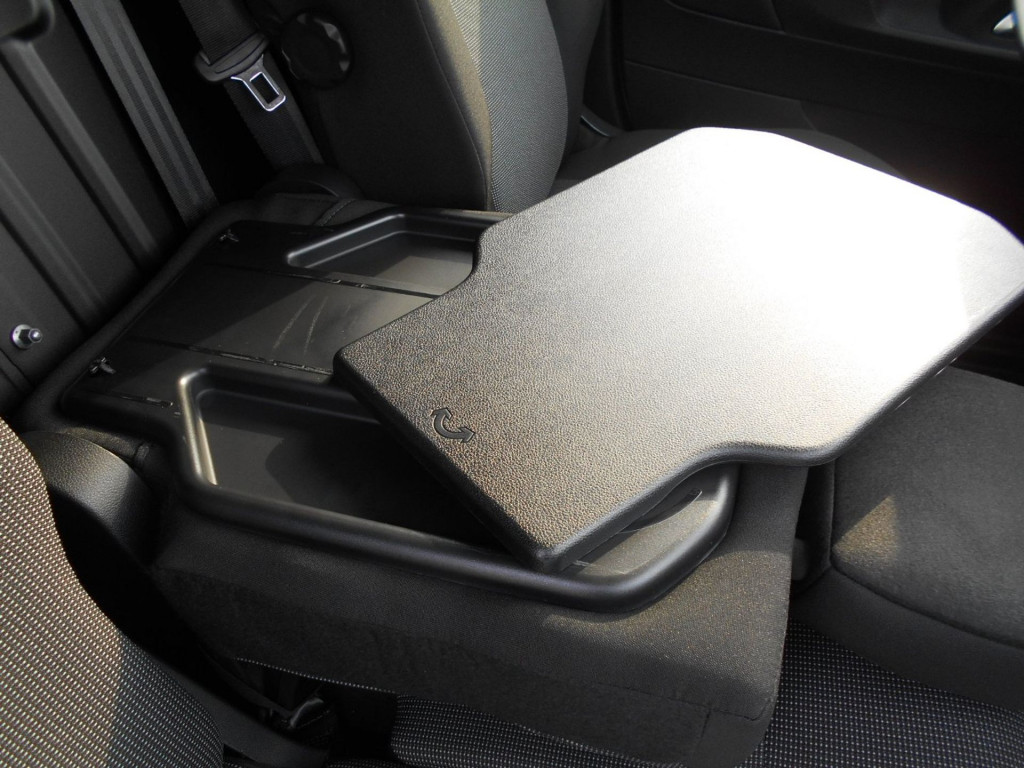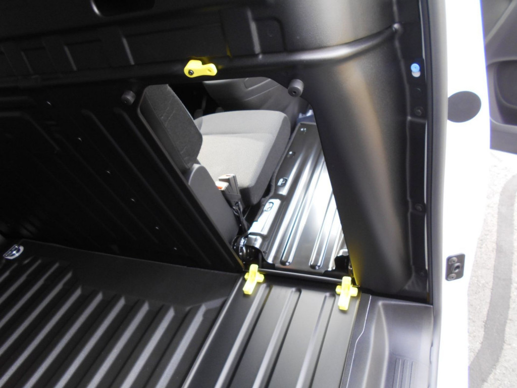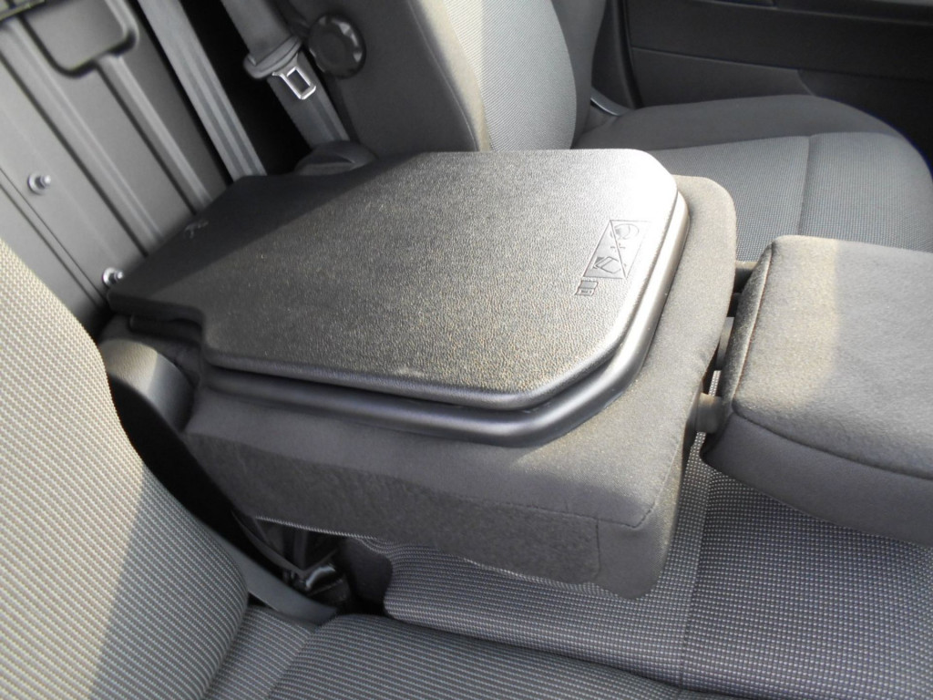 Multiflex Beifahrer-Doppelsitzbank- Rückenlehne des Mittelsitzes umklappbar, mit schwenkbarer Schreibunterlage- Staufach von 8l unter dem Mittelsitz- Außensitz hochklappbar (für mehr Stauraum in der Fahrerkabine)-Durchladeklappe zum Laden langer Gegenstände Radioanlage AOI Reserverad Laderaumboden mit Gummibodenbelag