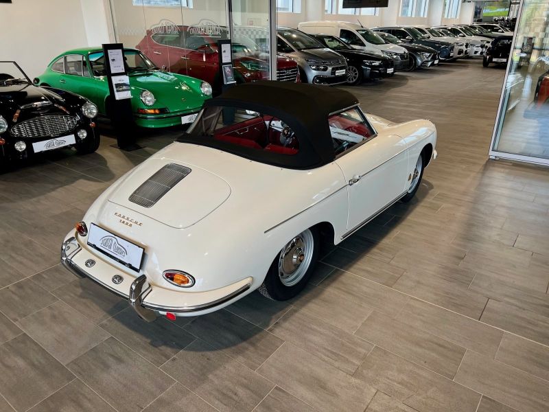 Absolutes Sammlerstück, Neufahrzeug, muss man gesehen haben!Wir bieten hier die einzigartige Möglichkeit, einen der schönsten, besten und qualitativ hochwertigsten Porsche 356 B 1600 Roadster weltweit, zu erwerben. Das Fahrzeug wurde kürzlichmit viel Liebe zum Detail, nurhochwertigsten Materialien, enormer Handwerkskunst und ohne jegliche Scheu auf Kosten, völlig neu und von Grund aufgebaut. VomMotor, über das Getriebe, der roten Innenausstattung und der klassischen Karosserieform, gleicht das Fahrzeug mindestens der damaligen Werks- Neuauslieferung.