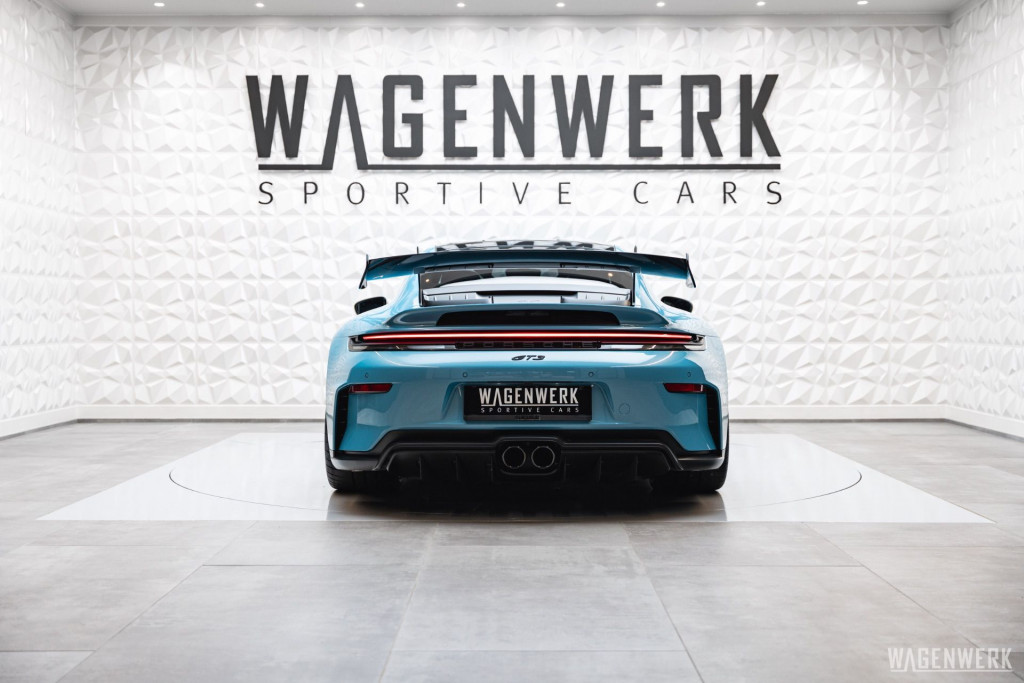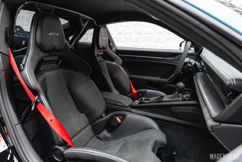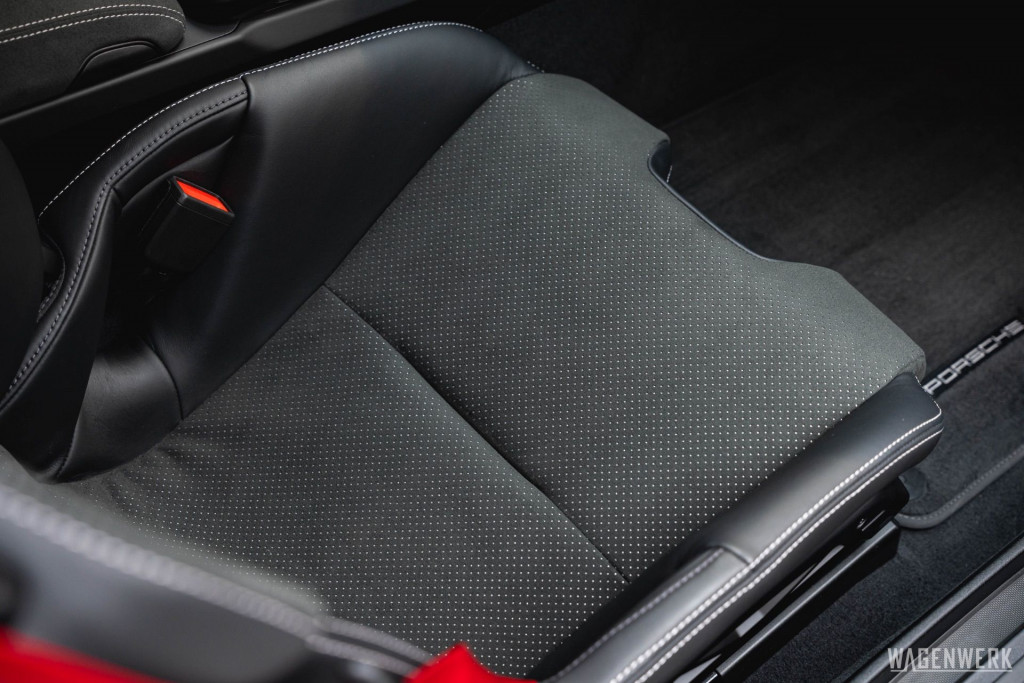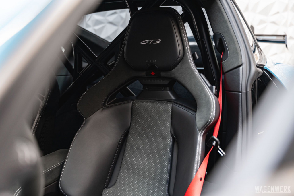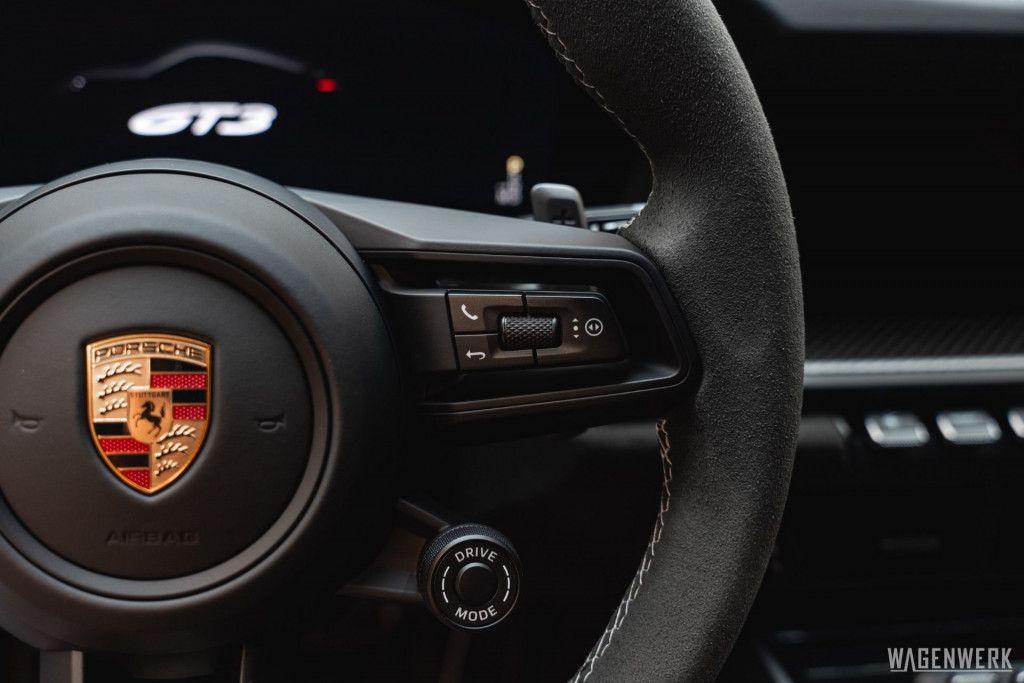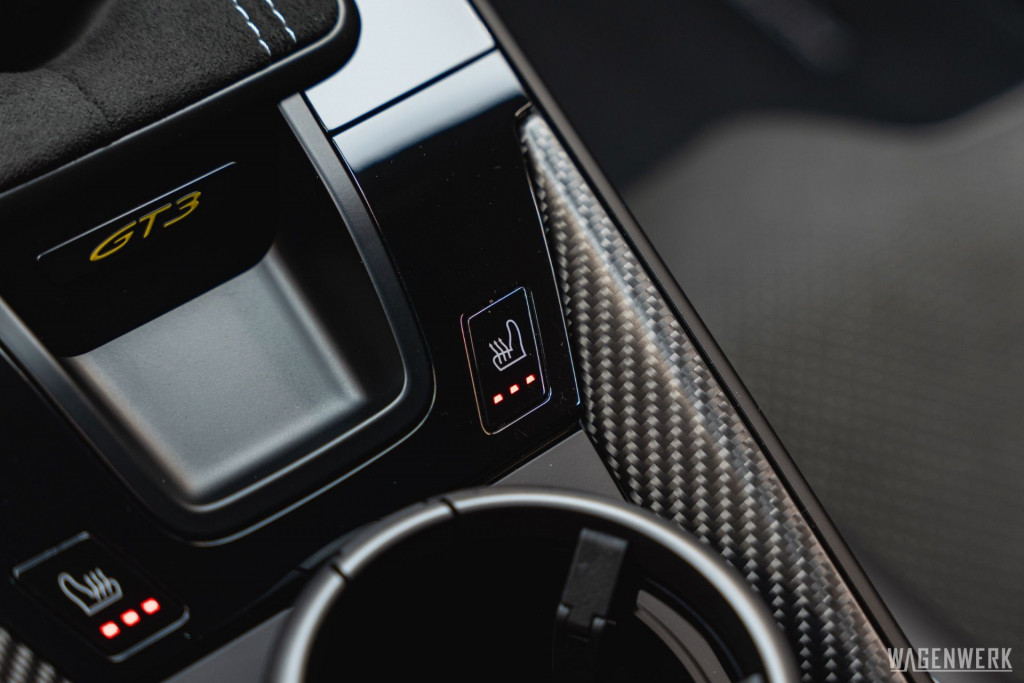 Dieser GT3 kommt als Clubsport-Ausführung – konsequenter Leichtbau, maximaler Fokus. Carbon-Schalensitze, Interieurpaket Carbon, BOSE Soundsystem, HD-Matrix-Scheinwerfer in Schwarz, Liftsystem, Rückfahrkamera – kompromisslos sportlich, ohne auf Perfektion im Detail zu verzichten.