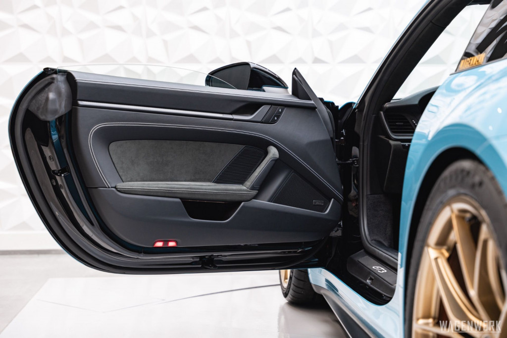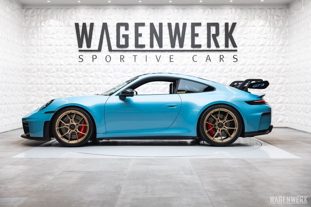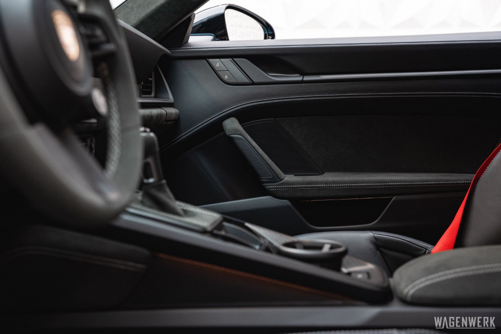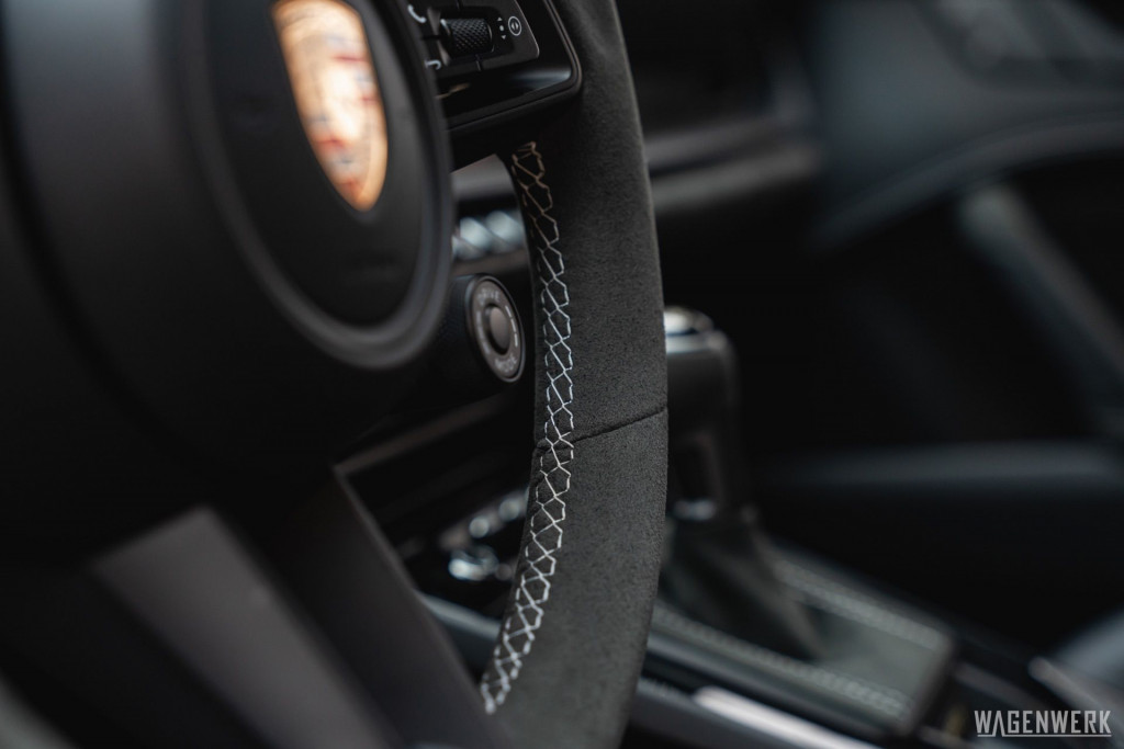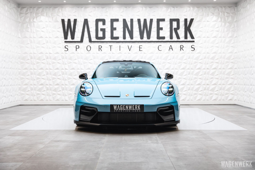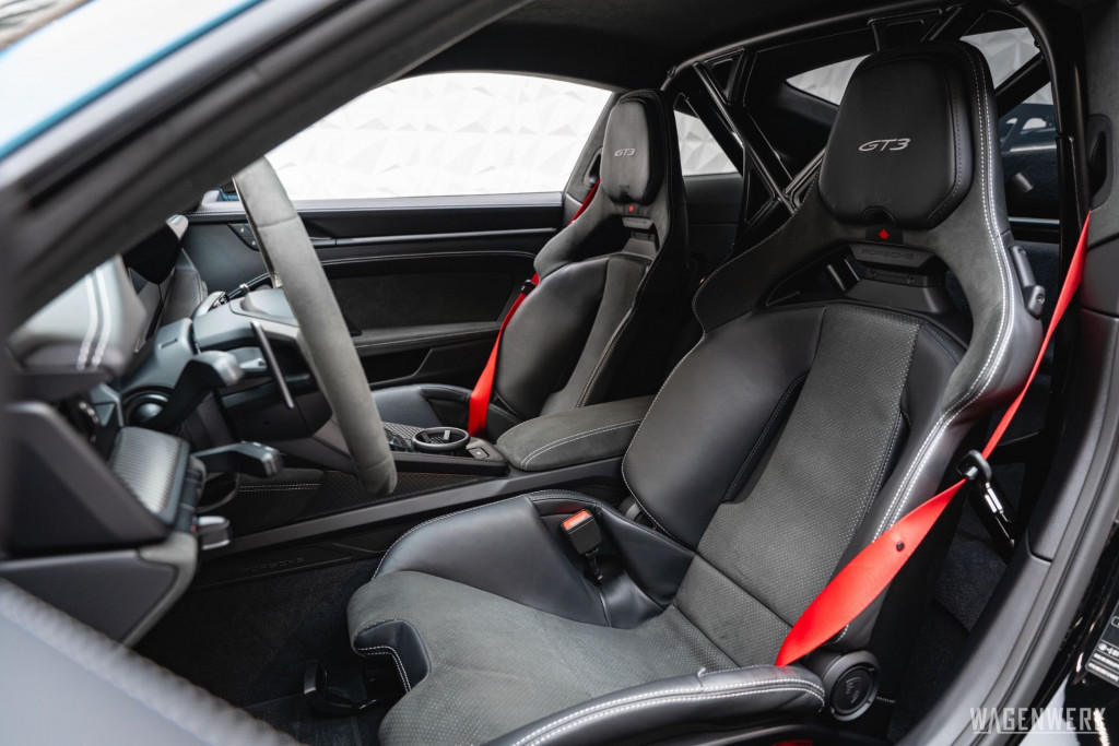 Dieser GT3 kommt als Clubsport-Ausführung – konsequenter Leichtbau, maximaler Fokus. Carbon-Schalensitze, Interieurpaket Carbon, BOSE Soundsystem, HD-Matrix-Scheinwerfer in Schwarz, Liftsystem, Rückfahrkamera – kompromisslos sportlich, ohne auf Perfektion im Detail zu verzichten.