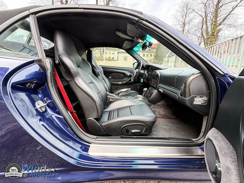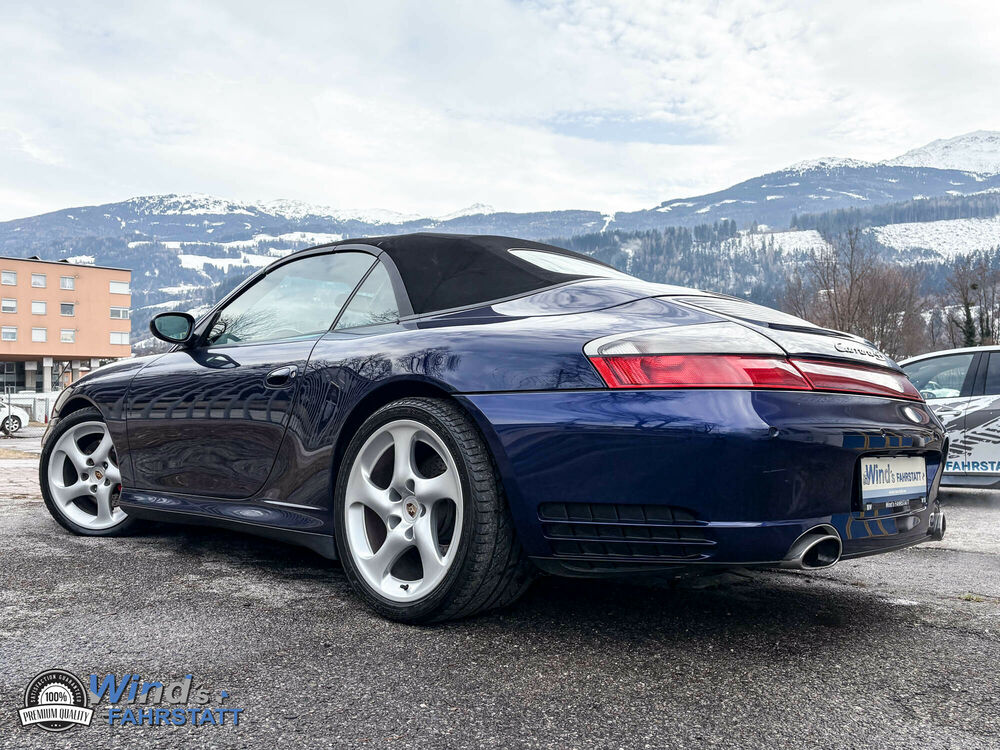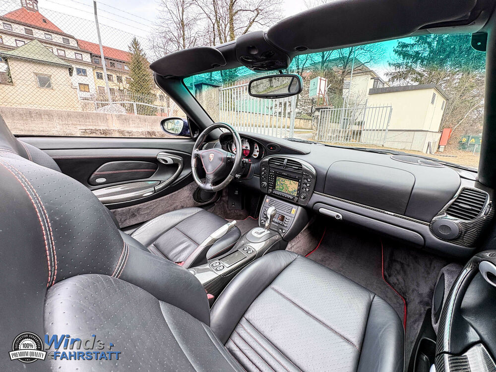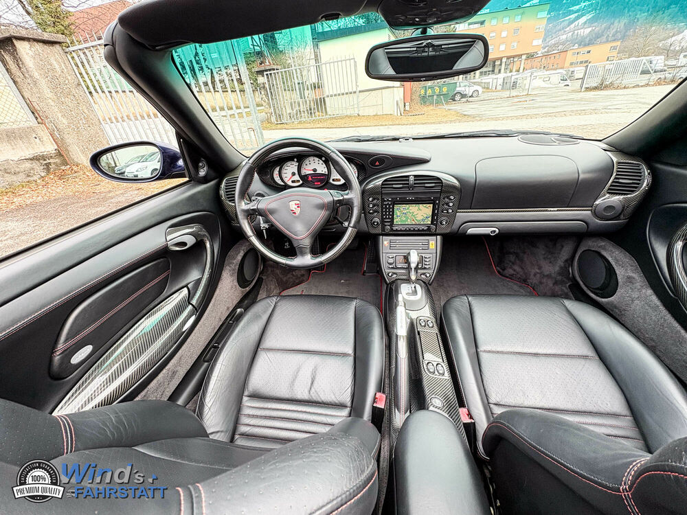 ein gepflegtes Porsche 996 Carrera 4S Cabrio : 1. Besitz ( wurde innerhalb der Familie einmal umgemeldet ) mit nur 126.050 Km -Klangpaket Harmann - Carbon Paket : Luftseitendüsen - Defrosterblende - Lautsprecherabdeckung - Mitteldüsenträger - Zierleisten - Instrumentenabdeckung Unterteil - Türtafelteile - Handbremshebel - Tiptronic Wahlhebel !!! CD Einzug + CD Wechsler , Sportabgasanlage , 18 Zoll Rad Turbo Look , Sitzheizung vorne , Naturleder Sportsitze mit Porsche Wappen Geprägt in Kofstütze , Xenonlicht , PCM Navigation u.v.m im Auftrag des Kunden