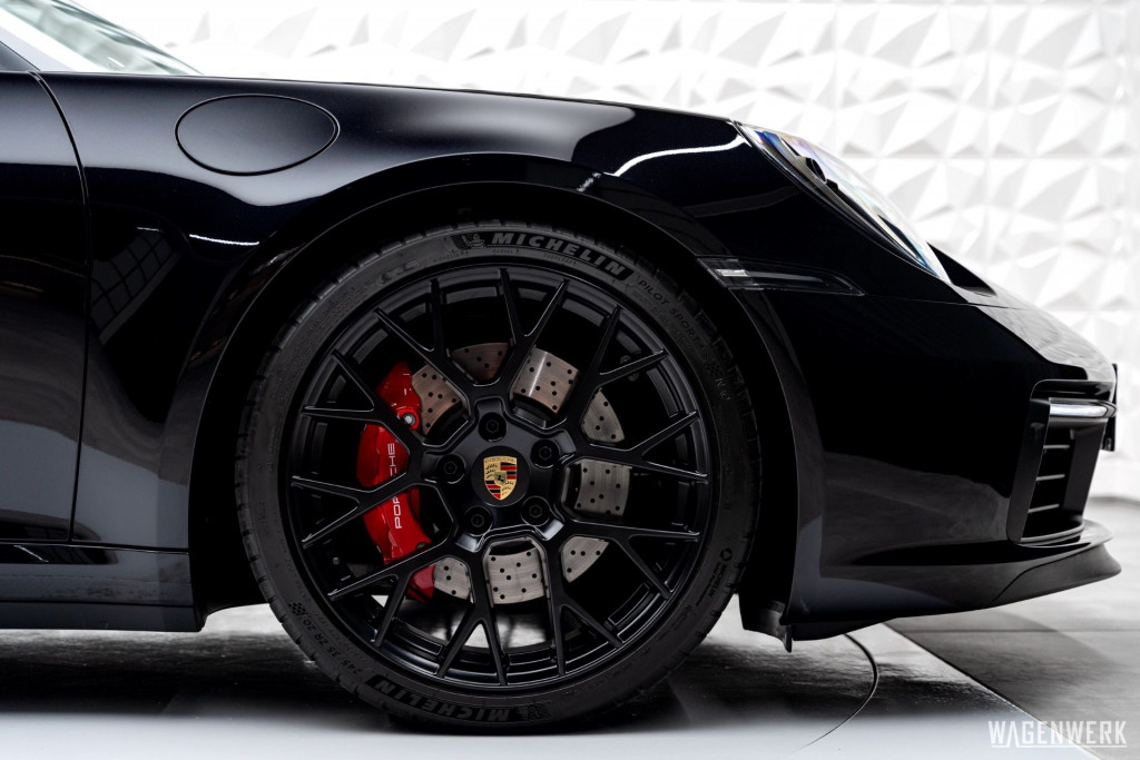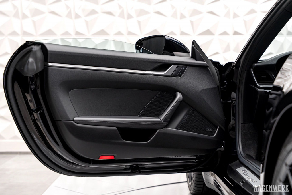 Optisch tritt dieser 4S in einer Konfiguration auf, die selten, klar und technisch wirkt:Tiefschwarz Metallic, kombiniert mit schwarzer Lederausstattung und in schwarz lackierten RS-Spyder-Rädern– ein Setup, das die Linien des 992 schärft und dem Fahrzeug eine Präsenz verleiht, die nicht laut ist, sondern eindrucksvoll. Allblack.