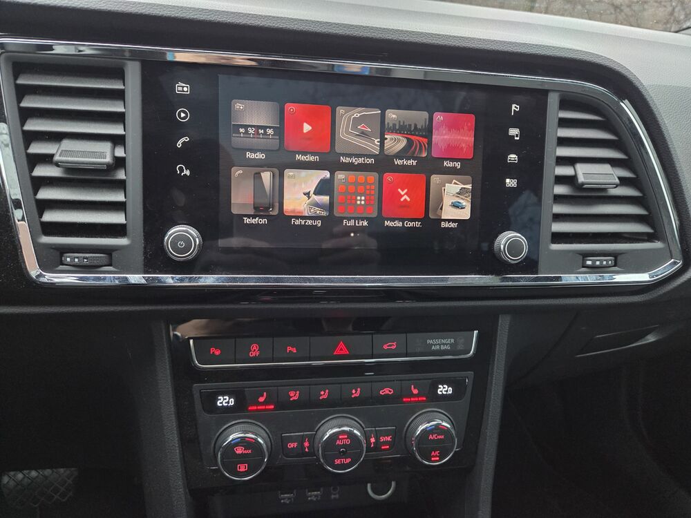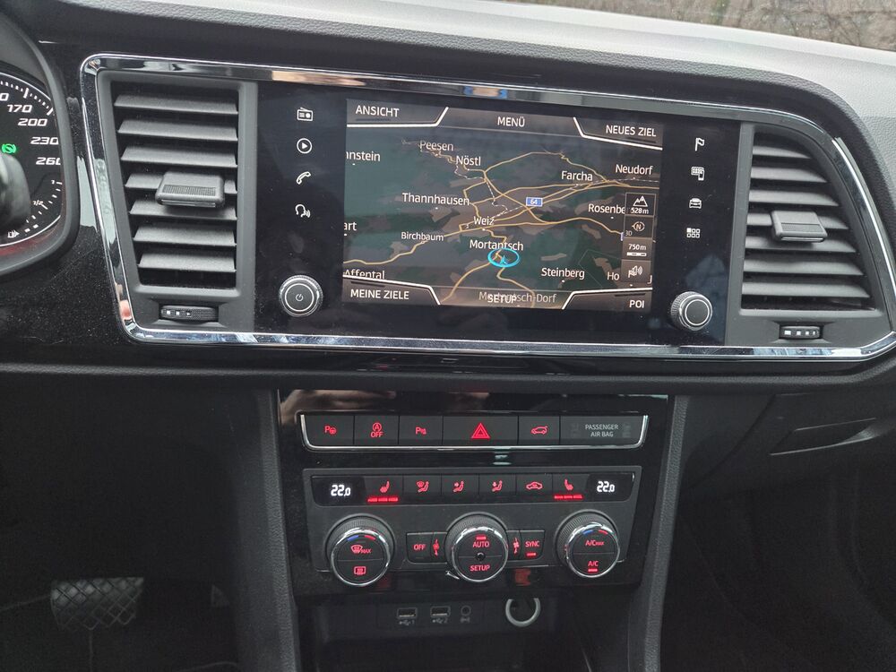 Sehr schöner Seat Ateca Allrad 7-Gang Automatikgetriebe.Gute Ausstattung wie z. B.: ESP, platzsparendes Notrad, Ledersportmultifunktionslenkrad mit Tiptronic, ISOFIX, Dachreling, Sitzheizung, Mittelarmlehne, Front Assistent inkl. City ANB für ACC high, Spurhalteassistent, Navigationsgerät-Standard, Fernlichtassistent, LED-Hauptscheinwerfer, Automatische Distanzregelung, Nebelscheinwerfer, Multifunktionsanzeige Bordcomputer, Scheibenwaschdüsen beheizbar, Müdigkeitserkennung, Panorama-Ausstelldach elektrisch, Verkehr4szeichenerkennung, Winterparket
