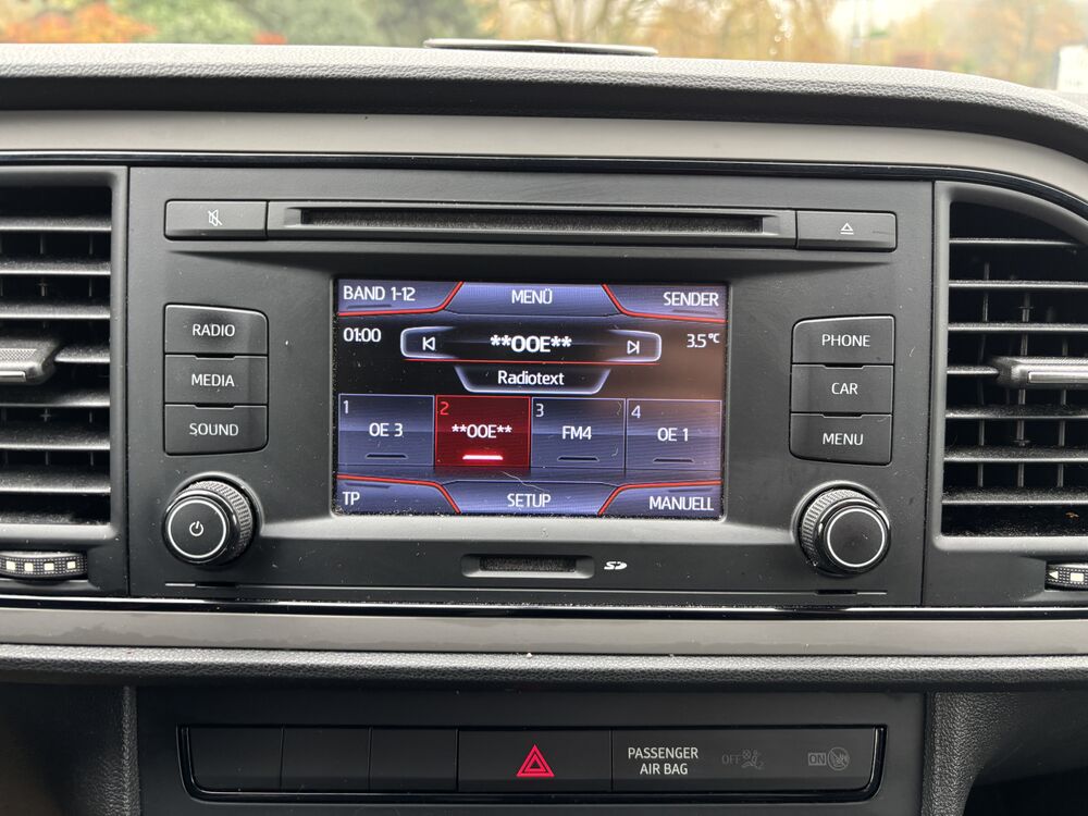 4 Lautsprecher, Außenspiegel und Türgriffe außen in Wagenfarbe, Außentemperaturanzeige, Doppelscheinwerfer, Handschuhfach beleuchtet, Kopfstützen vorn verstellbar, Lenksäule (Lenkrad) höhenverstellbar, Reifen-Reparaturset, Schadstoffarm nach Abgasnorm Euro 5, Sitz vorn links höhenverstellbar, Sonnenblende links mit Spiegel (beleuchtet), Sonnenblende rechts mit Spiegel (beleuchtet), Steckdose (12V-Anschluß) vorn, Stoßfänger lackiert, Mittelkonsole vorn mit Mittelarmlehne, Becherhalter, Ablagebox und Luftausströmer hinten, SEAT Media-System Touch Colour, Sonderlackierung Emocion-Rot / Pure RotWeitere Angebote: