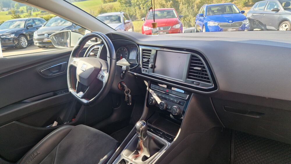 8 Lautsprecher, Ablagetasche an Vordersitzlehnen, Außenspiegel und Türgriffe außen in Wagenfarbe, Außentemperaturanzeige, Doppelendrohr (2) oval, verchromt, Handschuhfach beleuchtet, Innenausstattung: Chrom-Applikationen, Innenraumlicht-Paket LED, Kopfstützen vorn verstellbar, Lendenwirbelstütze Sitz vorn links, verstellbar, Lendenwirbelstütze Sitz vorn rechts, verstellbar, Lenksäule (Lenkrad) höhenverstellbar, Modellpflege, Parkbremse elektrisch, Schadstoffarm nach Abgasnorm Euro 6, Schalt-/Wählhebelgriff Leder, Sitz vorn links höhenverstellbar, Sitz vorn rechts höhenverstellbar, Sonnenblende links mit Spiegel (beleuchtet), Sonnenblende rechts mit Spiegel (beleuchtet), Stau-/Ablagefach unter Sitz vorn rechts, Stau-/Ablagefach unter Sitze vorn, Steckdose (12V-Anschluß) vorn, Stoßfänger lackiert, Warnanlage für Sicherheitsgurt-System, Alcantara-Paket, Sitzbezug / Polsterung: Leder / Alcantara, Lendenwirbelstütze Sitz vorn rechts, verstellbar, Fahrassistenz-Paket, Fahrassistenz-System: Stauassistent (Traffic Jam Assist), Mobile Online Dienste Full Link, Reserverad als Notrad, SEAT Media-System Plus, Sonderlackierung Weiß, Winter-Paket, Scheinwerfer-Reinigungsanlage (SRA), Scheibenwaschdüsen heizbarFahrzeugbeschreibung