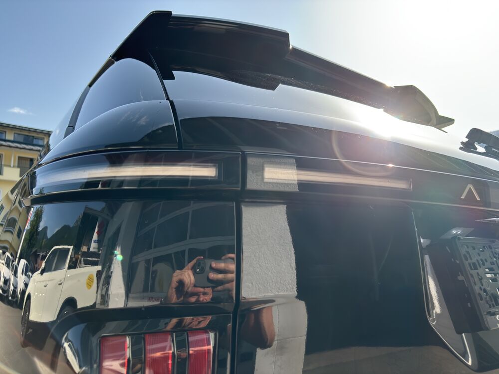 Echtleder Schwarz m. roten Nähten & Akzenten, 360° Rundumkamera, Space Black met. Lack, Panorama GlasschiebedachFahrzeugbeschreibung