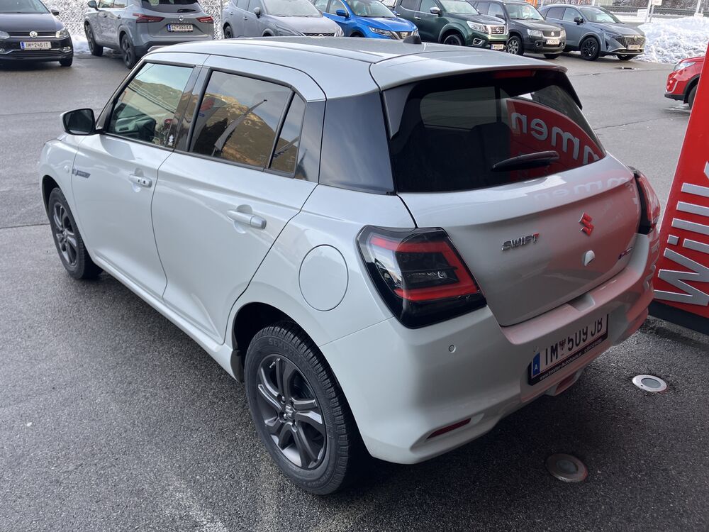 Fahrersitz höhenverstellbar, Dachspoiler in Wagenfarbe, Außentemperaturanzeige, Sitzheizung Vordersitze, Ledermultifunktionslenkrad, ACC Tempomat, Speed-Limiter, elektr. einstellbare und beheizbare Außenspiegel, 16" Sommerräder mit Alu-Felgen, Lichtsensor, Fernlichtassistent, Berganfahrhilfe, ESP, elektr. FH vorne und hinten, ISOFIX, i-Key Schlüsselsystem, geteilte Rücksitzbank 60:40, Rückfahrkamera, Parksensoren hinten, Lenkrad verstellbar, Voll-LED Scheinwerfer, LED-Tagfahrlicht, Beifahrerairbag deaktivierbar, Verkehrszeichenerkennung, Totwinkelassistent, Querverkehrswarner, 9" Audio-System mit Navigation und Smartphone Spiegelung, zusätzlich dunkel getönte Scheiben ab der B-Säule, Colorverglasung, USB A und C-Schnittstelle, e-Call, Spurhalteassistent, Spurwechselassistent, Verkehrszeichenerkennung, Notbremsassistent, ZV mit Fernbedienung, I-Ley Schlüsselsystem, Alarmanlage, Coming-Home Funktion, Totwinkelassistent, Querverkehrswarner, 4,2" LCD-Multifunktionsdisplay, Klimaanlage, Müdigkeitserkennung, Notbremsassistent, Suzuki-Data Recorder, Suzuki-Connect App, Servotronic, etc.(Irrtümer vorbehalten)