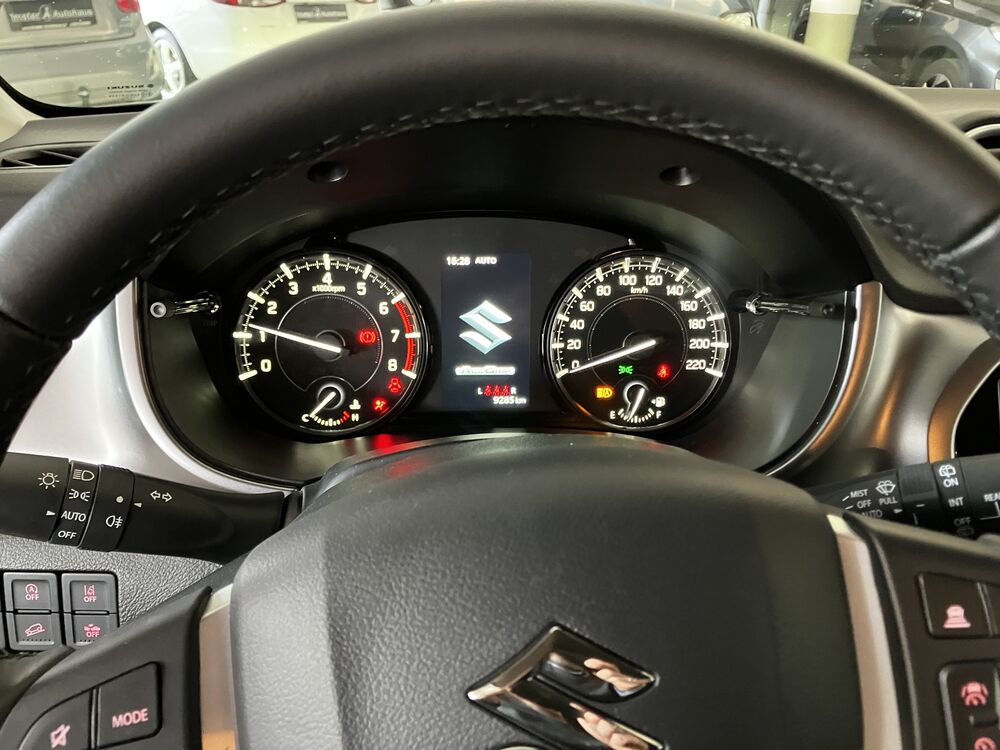 Fahrersitz höhenverstellbar, elektr. FH vorne und hinten, Außentemperaturanzeige, Sitzheizung Vordersitze, 3-Speichen Lederlenkrad mit Multifunktionstasten, Drive-Mode System ( Auto, Snow, Sport und Look), RDKS System, 17" Sommerräder mit Alu-Felgen, ACC Tempomat, Bluetooth-Schnittstelle, elektr. einstellbare und beheizbare Außenspiegel, Licht- und Regensensor, Berganfahrhilfe, Bergabfahrhilfe, ESP, ISOFIX, I-Key Schlüsselsystem, ZV mit Fernbedienung, geteilte Rücksitzbank 60:40 umklappbar mit doppeltem Laderaumboden, Rückfahrkamera, Dachreling, LED-Tagfahrlicht, Innenspiegel automatisch abblendbar, Colorverglasung, Beifahrerairbag abschaltbar, Verkehrszeichenerkennung, 9" Audiosystem mit Navigation und Smartphone Spiegelung, zusätzlich dunkel getönte Scheiben ab der B-Säule, E-Call Notrufsystem, Klimaautomatik, DWA, 4,2" Multifunktionsdisplay, Notbremsassistent, Geschwindigkeitsassistent, Fahrer Monitoring System mit Müdigkeitserkennung, On Board Diagnose System, Spurhalteassistent, Spurwechselassistent, Querverkehrswarner, Totwinkelassistent, Suzuki-Connect App, LED-Standlicht, LED-Tagfahrlicht, Mittelarmlehne vorne, Einparkhilfe hinten, Voll-LED-Scheinwerfer vorne mit Fernlichtassistent, etc.(Irrtümer vorbehalten)