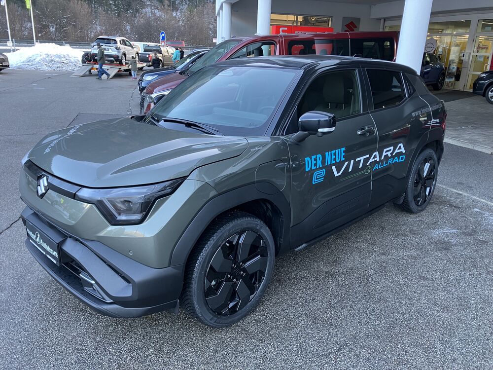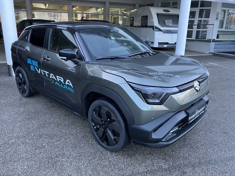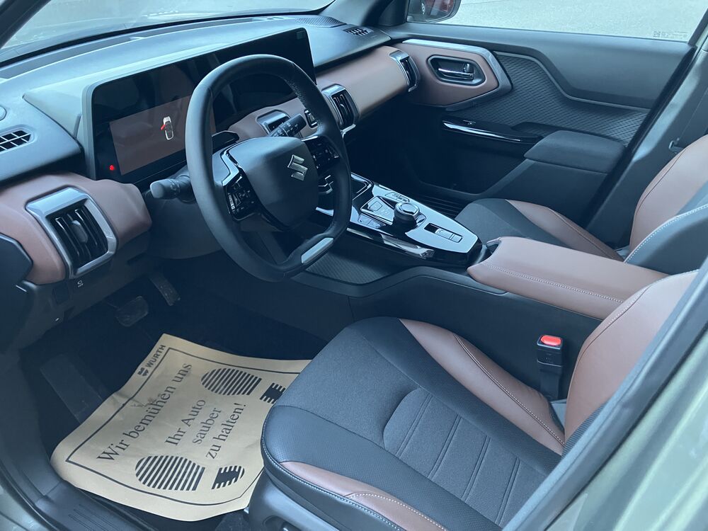 19" Sommerräder auf LM-Felgen 225/50R19, ESP, Notbremsassistent, Spurhalteassistent, Spurwechselassistent, ACC Tempomat mit Verkehrszeichenerkennung, Adaptives Fernlichtsystem, Totwinkelassistent, Querverkehrswarner, Fahrer Monitoring System, Müdigkeitserkennung, e-Call System, 360° Kamerasystem, Allgrip-e System, Fahrmodus System (Eco, Normal, Sport), Berganfahrhilfe, Bergabfahrhilfe, Easy-Pedal System (Rekuperation variabel einstellbar), ISOFIX,,LED-Scheinwerfer mit automatischer Leuchtweitenregulierung, elektr. einstellbar, beheizbare und einklappbare Außenspiegel, Dachspoiler in Wagenfarbe, Panorama-Glasdach, zusätzlich dunkel getönte Scheiben ab der B-Säule, teilbeheizte Frontscheibe, Regensensor, 10,2" TFT Display + 10,1 TFT Zentraldisplay, Einpedal-System "Easy-Pedal", Premium Soundsystem "Infinity by Harmann", induktives Laden, Klimaautomatik, Suzuki Connect App, I-Key Schlüsselsystem, elektr. FH vorne und hinten, Lenkradheizung, Sitzheizung, Teillederausstattung 2-farbig, Fahrersitz elektr. verstellbar, geteilte Rücksitzbank mit Durchladeeinrichtung, Innenspiegel automatisch abblendbar, Typ 3-phasiges Laden ,etc.Gutschein über 500,00 € öffentliches Laden