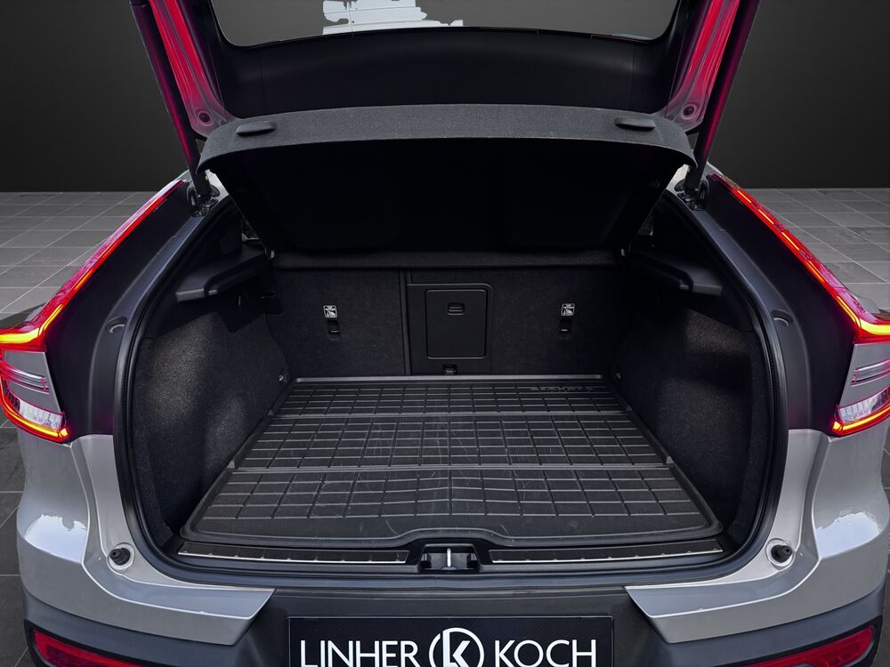 Anhänger-Stabilisierungs-Programm (TSA) Vorbereitung, Applikationen an den Seitenfenstern schwarz, hochglänzend, Außenspiegel heizbar, Außenspiegel schwarz, hochglänzend, Beinauflage manuell einstellbar, Sitze vorn, Blinkleuchten LED in Außenspiegel integriert, Dachhimmel Anthrazit, Digitale Instrumentierung 12,3"-Display 2. Generation, Einstiegsleisten mit Schriftzug (Aluminium), Erste Hilfe-Kasten / Verbandkasten, Fahrassistenz-Paket: Safety Assistance, Frontkamera (Toter Winkel), Geschwindigkeits-Begrenzeranlage, Fahrassistenz-System: Straßenrand-Erkennung (Road Edge Detection), Fahrassistenz-System: Connected Safety, Fahrassistenz-System: Oncoming Lane Mitigation, Fahrassistenz-System: Ready to Drive Notification, Fahrassistenz-System: Driver Assistance, Fahrassistenz-System: Emergency Stop Assist, Fahrassistenz-System: Pilot Assist, Fahrassistenz-System: Driver Awareness, Fahrassistenz-System: Heckaufprall-Abschwächung, Fahrassistenz-System: Querverkehrs-Assistent Heck (Cross Traffic Alert, CTA), Fahrassistenz-System: Run-off Road Protection, Frontstaufach / Frunk (Kofferraum, vorn), Fußraumleuchte vorn, Gepäckraum-Abtrennung (Netz), Gepäckraumboden variabel, Getränkehalter in Mittelkonsole, Halterung Feuerlöscher, Heckscheibe heizbar, HV-Batterie 78 kWh brutto / 75 kWh netto (Lithium-Ionen), Induktionsladeschale für Smartphone, Service-System: Google Services, Betätigung Heckklappe/-Deckel automatisch, Türgriffe außen beleuchtet, Kindersicherung elektr. betätigt, Luftqualitäts-Überwachungssystem erweitert (Clean Zone Interior Package CZIP), Innenraumfilter: Pollenfilter, Kopfstützen hinten elektr. umklappbar, Ladekantenschutz (Edelstahl), Lendenwirbelstützen vorn, elektr. verstellbar (4-Wege), Lenksäule (Lenkrad) höhen-/längsverstellbar, Leseleuchten vorn und hinten, Make-up-Spiegel beleuchtet, Mittelarmlehne hinten mit Getränkehalter, Durchladeeinrichtung (Mittelarmlehne hinten), Nebelschlussleuchte, One Pedal Drive (elektronisches Gaspedal), Parkbremse elektrisch, Radstand 2702 mm, Reifen-Reparaturset, Schleudertrauma-Schutzsystem (WHIPS), Sicherheitsgurte vorn höhenverstellbar, Außenspiegel mit Memoryfunktion, Sitz vorn links höhen-/neigungsverstellbar, Sitz vorn rechts höhenverstellbar, Taschenhaken im Gepäckraum, Textilfussmatten, Volvo ON CALL, Warnanlage für Sicherheitsgurte vorn und hinten, Wärmepumpe zur Reichweitenoptimierung, Ladekabel (4,5 m) mit Typ 2-Stecker (Mode 3), Seitenscheiben ab B-Säule abgedunkelt, Sitzbezug / Polsterung: Connect Textil / Micro-Tech (Ledernachbildung), Innenausstattung: Dekoreinlagen Topography beleuchtet, Mittelarmlehne hinten mit Getränkehalter, Durchladeeinrichtung (Mittelarmlehne hinten)Fahrzeugbeschreibung