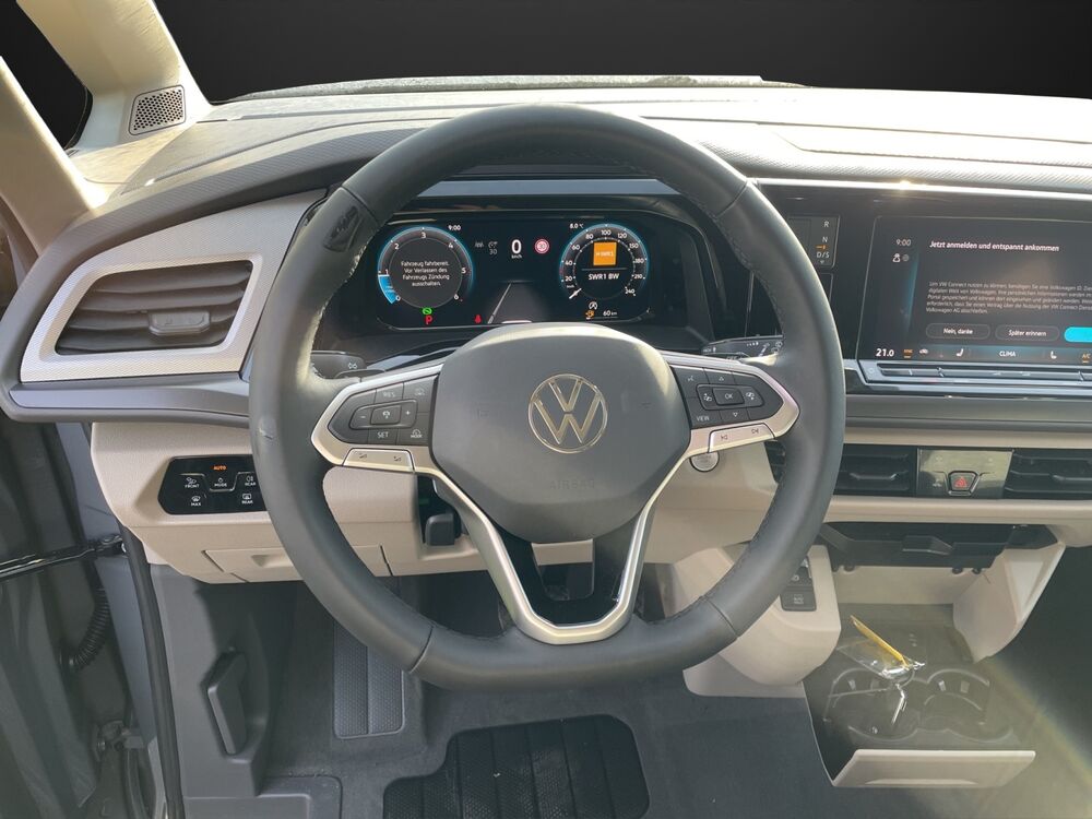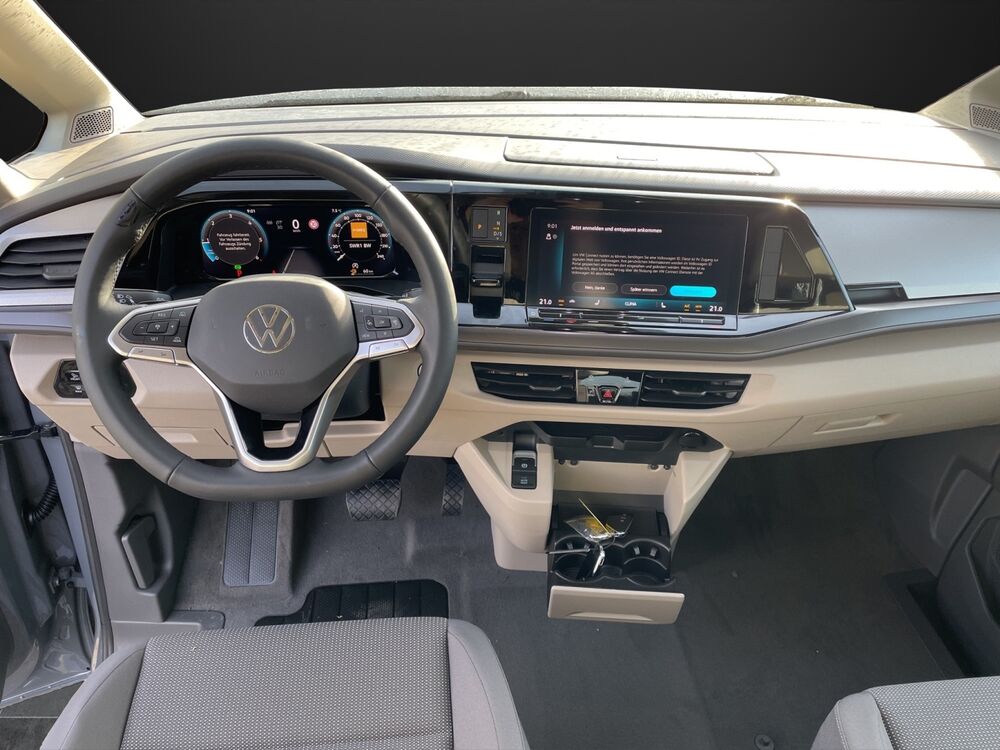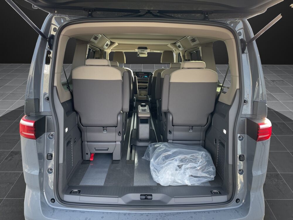Aufstelldach manuell betätigt mit Bugfenster und Frontöffnung, Faltenbalg grau, Außenspiegel schwarz lackiert, Bodenbelag im Lade-/Fahrgastraum Kunststoff, Digital Cockpit Pro (Instrumentenanzeige Digital), Fahrassistenz-System: Ausweich-Assistent und Abbiege-Assistent, Fenster im Lade-/FG-Raum: - feststehend, vorn links, Fenster im Lade-/FG-Raum: - feststehend, vorn rechts, Frontscheibe Verbundglas getönt, Funkschlüssel (2), Heckklappe mit Verglasung, Innenausstattung: Dekoreinlagen Scale Light Grey, Lautsprecher (8), Markisenleisten schwarz, Mobile Online Dienste Vorbereitung We Connect und We Connect Plus, Nichtraucher-Paket, Radstand 3124 mm, Radvollabdeckungen, Reifen-Reparaturkit, Schadstoffarm nach Abgasnorm Euro 6e, Scheibenwischer mit Intervallschaltung, regulierbar, Sicherheitsgurte vorn mit Gurtstraffer und Endbeschlagstraffer, höhenverstellbar, Sitzausstattung: 6-Sitzer, Sitzbezug / Polsterung: Stoff Bright Dots, Sitze im Fahrerhaus: Beifahrersitz höhenverstellbar, Sitze im Fahrerhaus: Fahrersitz höhenverstellbar, Sitze im Lade-/FG-Raum: 2.Reihe, 2 Einzelsitze, Sitze im Lade-/FG-Raum: 3.Reihe, 2 Einzelsitze, Verdunkelungssystem: Rollos und Thermomatten, Vorbereitung für Alkohol-Wegfahrsperre (Alcolock), Warnanlage für Sicherheitsgurte vorn und hinten, Zierleiste zwischen Scheinwerfern: schwarz lackiert, Zul. Gesamtgewicht 2,85 t, Ausstattungs-Paket: Family, Verglasung hinten abgedunkelt (65 %), Fenster im Lade-/FG-Raum: - schiebbar, vorn links, Fenster im Lade-/FG-Raum: - schiebbar, vorn rechts, Schubladen unter Rücksitze außen und 2 Abfallbehälter, Multifunktionstisch verschiebbar, Ausstattungs-Paket: Top, Schlechtwetter-Licht, Heckleuchten dunkel getönt, Sonnenblenden mit Spiegel (beleuchtet), Fahrassistenz-Paket Advanced, Fahrassistenz-Paket: Travel Assist, Emergency Assist und Lane Assist, Fahrassistenz-System: Spurwechselassistent (Side Assist / Blind Spot Sensor), Fahrassistenz-System: Spurwechselassistent (Side Assist) mit Auspark-Assistent und Ausstiegswarnung, Service-System: Intelligente Fahrzeugvernetzung (Car2X), Lackierung: 2-Farben-Lackierung Pure-Grey uni / Deep Black Perleffekt, Markise (Gehäuse und Markisenleisten schwarz, rechts), Reserverad in Fahrbereifung (Stahl)Fahrzeugbeschreibung