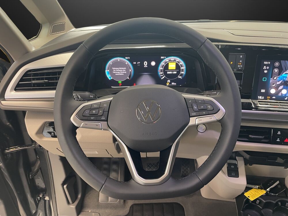 Aufstelldach manuell betätigt mit Bugfenster und Frontöffnung, Faltenbalg grau, Außenspiegel schwarz lackiert, Bodenbelag im Lade-/Fahrgastraum Kunststoff, Digital Cockpit Pro (Instrumentenanzeige Digital), Fahrassistenz-System: Ausweich-Assistent und Abbiege-Assistent, Fenster im Lade-/FG-Raum: - feststehend, vorn links, Fenster im Lade-/FG-Raum: - feststehend, vorn rechts, Frontscheibe Verbundglas getönt, Funkschlüssel (2), Heckklappe mit Verglasung, Innenausstattung: Dekoreinlagen Scale Light Grey, Lautsprecher (8), Markisenleisten schwarz, Mobile Online Dienste Vorbereitung We Connect und We Connect Plus, Nichtraucher-Paket, Radstand 3124 mm, Radvollabdeckungen, Reifen-Reparaturkit, Schadstoffarm nach Abgasnorm Euro 6e, Scheibenwischer mit Intervallschaltung, regulierbar, Sicherheitsgurte vorn mit Gurtstraffer und Endbeschlagstraffer, höhenverstellbar, Sitzausstattung: 6-Sitzer, Sitzbezug / Polsterung: Stoff Bright Dots, Sitze im Fahrerhaus: Beifahrersitz höhenverstellbar, Sitze im Fahrerhaus: Fahrersitz höhenverstellbar, Sitze im Lade-/FG-Raum: 2.Reihe, 2 Einzelsitze, Sitze im Lade-/FG-Raum: 3.Reihe, 2 Einzelsitze, Verdunkelungssystem: Rollos und Thermomatten, Vorbereitung für Alkohol-Wegfahrsperre (Alcolock), Warnanlage für Sicherheitsgurte vorn und hinten, Zierleiste zwischen Scheinwerfern: schwarz lackiert, Zul. Gesamtgewicht 2,85 t, Ausstattungs-Paket: Family, Verglasung hinten abgedunkelt (65 %), Fenster im Lade-/FG-Raum: - schiebbar, vorn links, Fenster im Lade-/FG-Raum: - schiebbar, vorn rechts, Schubladen unter Rücksitze außen und 2 Abfallbehälter, Multifunktionstisch verschiebbar, Ausstattungs-Paket: Top, Schlechtwetter-Licht, Heckleuchten dunkel getönt, Sonnenblenden mit Spiegel (beleuchtet), Fahrassistenz-Paket Advanced, Fahrassistenz-Paket: Travel Assist, Emergency Assist und Lane Assist, Fahrassistenz-System: Spurwechselassistent (Side Assist / Blind Spot Sensor), Fahrassistenz-System: Spurwechselassistent (Side Assist) mit Auspark-Assistent und Ausstiegswarnung, Service-System: Intelligente Fahrzeugvernetzung (Car2X), Markise (Gehäuse und Markisenleisten schwarz, rechts), Reserverad in Fahrbereifung (Stahl)Fahrzeugbeschreibung