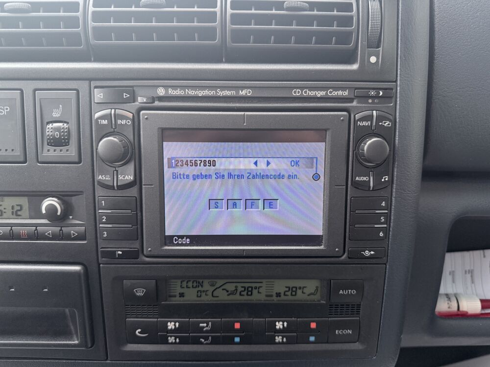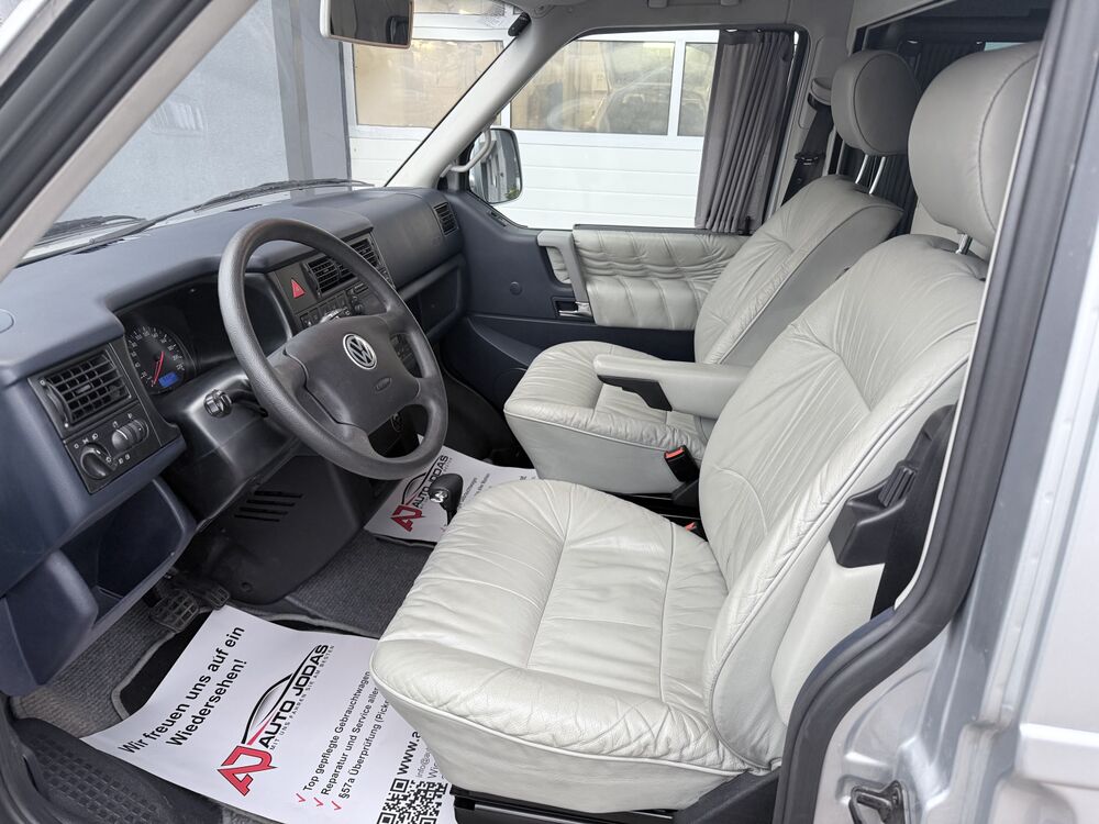 Außenspiegel asphärisch, links, Außenspiegel konvex, rechts, Bremsscheiben hinten 15" (280 mm x 12 mm), Bremsscheiben innenbelüftet, Doppeltonfanfare, Drehzahlmesser, Fahrwerk 15", Fenster im Lade-/FG-Raum: - feststehend, vorn links, Fenster im Lade-/FG-Raum: - feststehend, vorn rechts, Festsattel-Scheibenbremse, Frontscheibe Verbundglas, Generator: Bosch, Heckscheibe heizbar, Heckscheibenwischer, Karosserie/Aufbau: Bus, Karosserievariante: Normaldach, Kältemittel R 134 A, Leuchtweitenregelung, Make-up-Spiegel rechts, Nebelschlussleuchte, Reifen 205/65 R15C 102/100 T, Rückfahrscheinwerfer, Scheibenwaschdüsen beheizt, Scheinwerfer H4, Sitzanordnung 2-2-3, Sitzbezug / Polsterung: Stoff, Sitze im Lade-/FG-Raum: 1.Reihe, 2er-Sitzbank, Sitze im Lade-/FG-Raum: 2.Reihe, 3er-Sitzbank, Stahlfelgen 6x15, Zusatzbremsleuchte, 2. Batterie, Armaturentafel gepolstert, Frontscheibe mit Scheibenantenne, Drehzahlmesser, Batterie 80 Ah, Bodenbelag im Fahrerhaus: Gummi, Bodenbelag im Lade-/Fahrgastraum Gummi, Bremsscheiben vorn 15" (280 mm x 24 mm), Bremsscheiben innenbelüftet, Elektron. Stabilitäts-Programm (ESP), Stabilisator hinten, Frontscheibe Dämmglas, Frontscheibe mit Scheibenantenne, Generator 150 A, Getriebe Automatik - (4-Stufen), Fahrwerk 15", Longlife-Service, Luftfilter: Staubschutz Luftfilter, Motor 2,5 Ltr. - 75 kW TDI KAT (AUF), Radstand 3320 mm, Fahrwerk 15", Reserverad in Fahrbereifung, Scheinwerfer-Reinigungsanlage (SRA), Sitze im Fahrerhaus: Fahrer- und Beifahrersitz mit Armlehnen vorn, Sitze im Fahrerhaus: Lendenwirbelstütze Beifahrersitz, Sitze im Fahrerhaus: Lendenwirbelstütze Fahrersitz, Stabilisator hinten, Stoßfänger lackiert, Stoßfänger lackierfähigFahrzeugbeschreibung