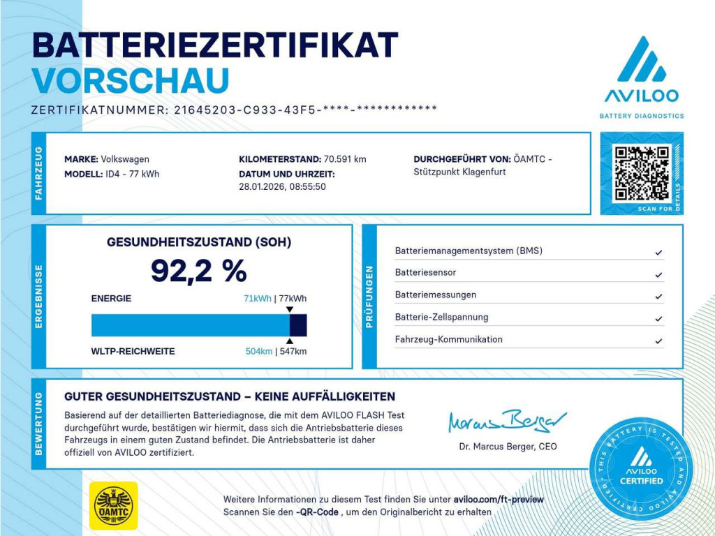 11 kW max. AC-Ladeleistung125 kW max. DC-Ladeleistung2 USB-C-Schnittstellen vorn6+1 Lautsprecher77 kWh BatterieAirbag für Fahrer und BeifahrerAmbientebeleuchtung 30-farbigApp-Connect inkl. Wireless-FunktionArmlehne für VordersitzeAußenspiegel elektrischAußenspiegel Fahrerseite asphärischAutomatische Distanzregelung ACCBordwerkzeugCar2XCCS-Ladedose (Combined-Charging-System)Dachreling schwarzDigitaler Radioempfang DAB+Diversity-Antenne für FM-EmpfangDreipunkt-AutomatiksicherheitsgurteDualmotor AllradantriebDynamische Fernlichtregulierunge-SoundEinfassung des Infotainment-DisplaysEinparkhilfeFahrprofilauswahlFrontscheibe in VerbundsicherheitsglasGepäcknetzGepäckraumbodenHerstellergarantieInfotainment-PaketInnenspiegel automatisch abblendendISOFIX-HalteösenKlimaanlage "Air Care Climatronic"Komfort-Paket "Plus"Kopfairbags vorn und hintenLadekabel für Haushaltssteckdose (230V)Ladekabel Mode 3 Typ 2 (16 A)LED-Matrix-ScheinwerferLED-Rückleuchten 3DLeiste zwischen den ScheinwerfernMake-up-Spiegel beleuchtetMittelkonsole variabelMüdigkeitserkennungMultifunktionslenkrad in LederNavigationssystem "Discover Pro"NetztrennwandNotbremsassistent "Front Assist"Notrufsystem eCallPedale in EdelstahlRäder, Leichtmetallräder "Ystad"RegensensorReifenkontrollanzeigeRücksitzlehne asymmetr. geteilt umklapp.Scheibenwaschdüsen vorn autom. beheiztScheibenwischer-IntervallschaltungSchlüsselloses StartsystemServolenkung elektromechanischSitzmittelbahnen der VordersitzeSprachbedienungSpurhalteassistent "Lane Assist"Stoßfänger in sportlichem DesignTelefonschnittstelle "Comfort"Tür und Seitenverkleidung SchaumfolieUmfeldbeleuchtungVerkehrszeichenerkennungVorbereitet für "We Connect Start"Vordersitze beheizbarVordersitze mit HöheneinstellungWärmepumpe zur ReichweitenoptimierungWärmeschutzverglasung "grün"WarndreieckWarnton/-leuchte für nicht angel. GurteWegfahrsperre elektronisch