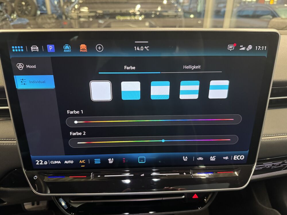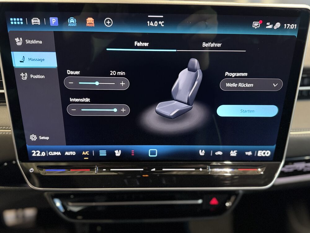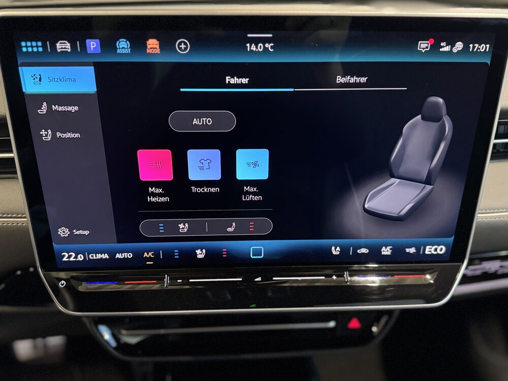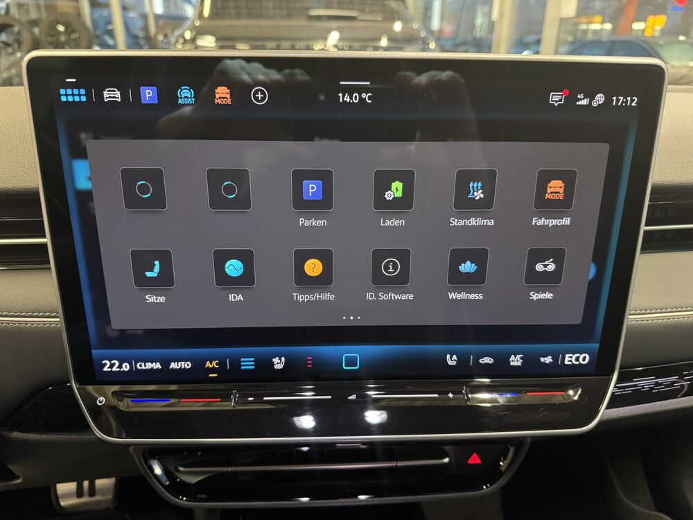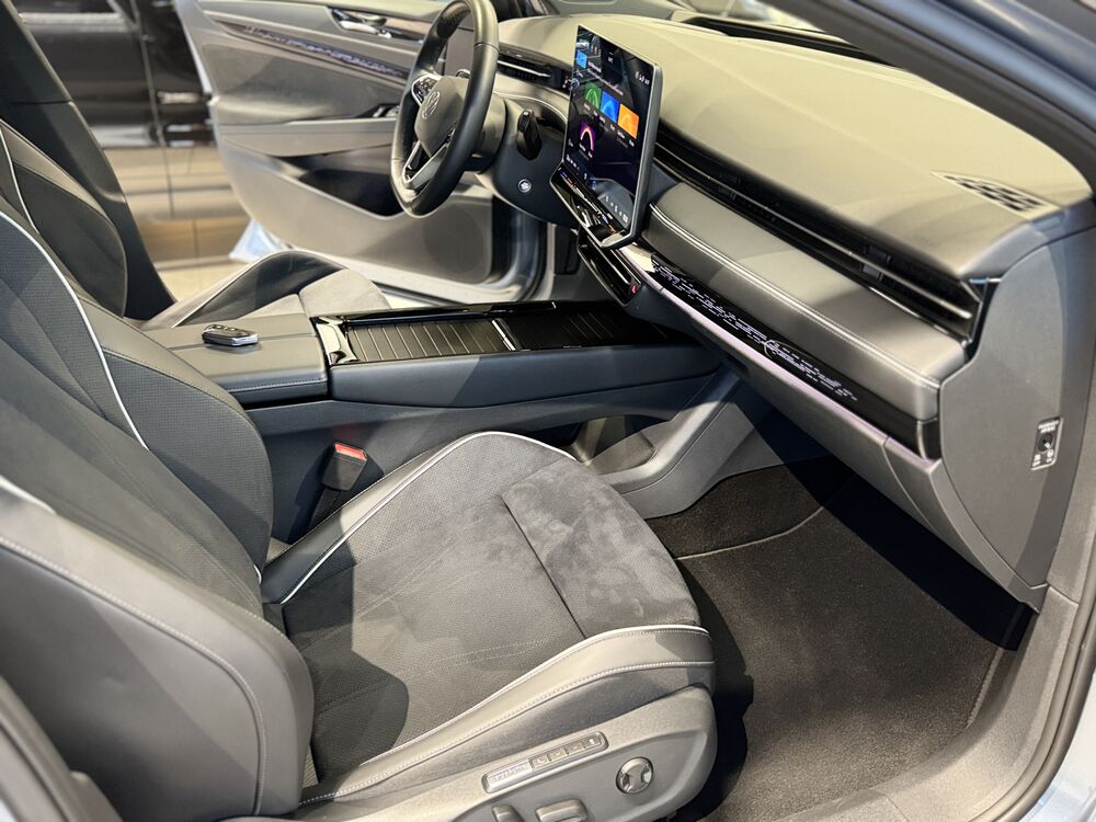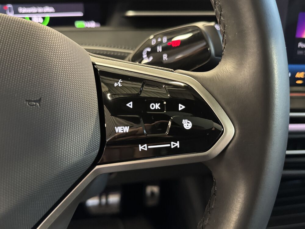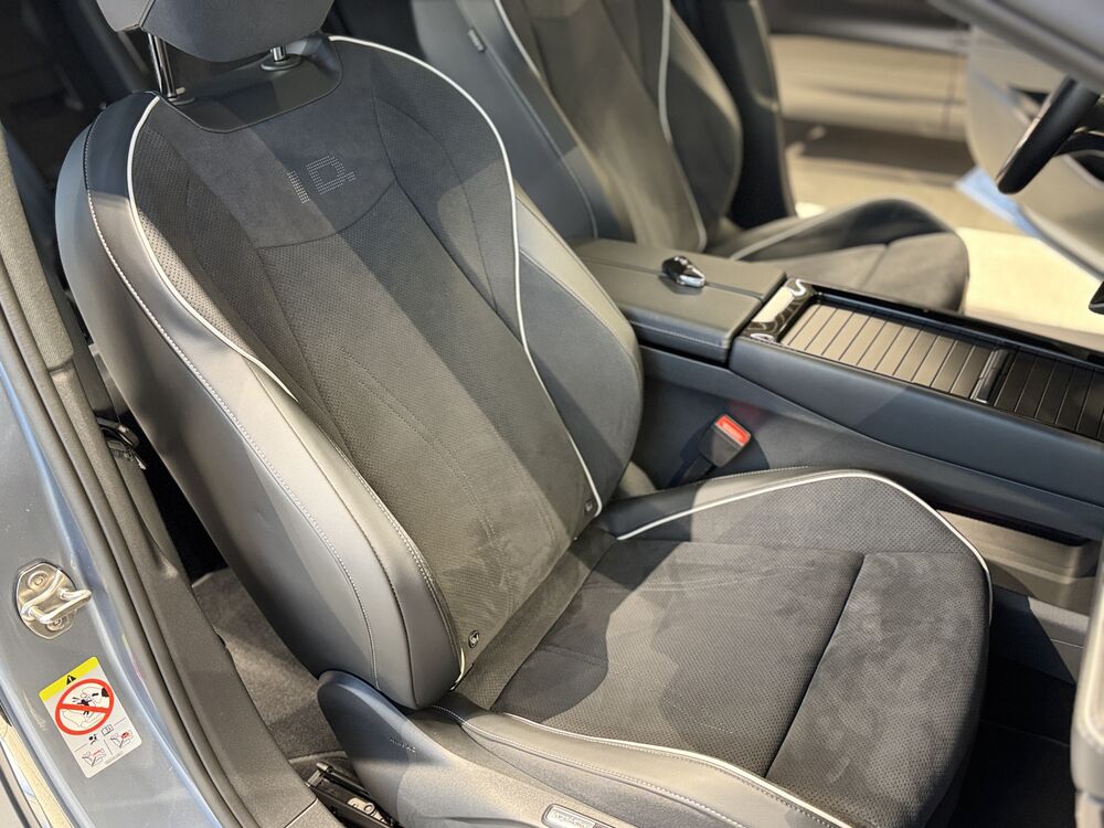 Akustischer Fußgängerschutz, Außensound (e-sound), Antennen-Diversity, Außenspiegel mit Umfeldleuchte und Projektionsfunktion, Außenspiegel schwarz lackiert, Bordwerkzeug, Fernentriegelung Heckklappe, Gepäckraum-Abtrennung (Netztrennwand), Gepäcksicherungsnetz, HV-Batterie 82 kWh brutto / 77 kWh netto, Ladekabel mit Schukostecker, Ladekabel mit Typ 2-Stecker (Mode 3, 16 A), Ladeleistung HV-Batterie 11 kW (Wechselstrom AC), Lautsprecher (9), Maximale DC-Ladeleistung (Gleichstrom) abhängig von der Anriebsbatterie, Pedale Edelstahl, Scheibenwaschdüsen heizbar, Schnellladevorrichtung (CCS-Ladedose), Service-System: Intelligente Fahrzeugvernetzung (Car2X), Sicherheitsgurte vorn mit Gurtstraffer, höhenverstellbar, Sitze vorn höhenverstellbar, Sonnenblenden mit Spiegel (beleuchtet), Stoßfänger Wagenfarbe, Türgriffschalen außen beleuchtet, Türverkleidung Schaumfolie, Einlagen in Kunstleder, Verbandkasten und Warndreieck, Vorbereitung für Alkohol-Wegfahrsperre (Alcolock), Vorbereitung für spätere Freischaltung - Memoryfunktion für Park Assist, Vorbereitung Onlinedienste We Connect (Plus) oder VW Connect (Plus) und Online-Update-Fähigkeit, Warnanlage für Sicherheitsgurte vorn und hinten, Assistenz-Paket, Fahrassistenz-Paket: Travel Assist, Emergency Assist und Lane Assist, Fahrassistenz-System: Memoryfunktion für Park Assist, Abbiege- und Allwetterlicht / Schlechtwetter-Licht, Seitenscheiben aus Verbundglas, Seitenscheiben hinten und Heckscheibe abgedunkelt, Seitenscheiben hinten und Heckscheibe abgedunkelt, Fahrassistenz-System: Adaptive Fahrwerksregelung (DCC) inkl. Fahrprofilauswahl, Progressivlenkung, Fußmatten Textil, Interieur-Paket Plus, Sitzbezug / Polsterung: Mikrovlies ArtVelours Eco gelocht / Artex, Komfort-Paket, Frontscheibe heizbar (drahtlos) und infrarot-reflektierend, Mobiltelefon Schnittstelle Comfort mit kabelloser LadefunktionWeitere Angebote: