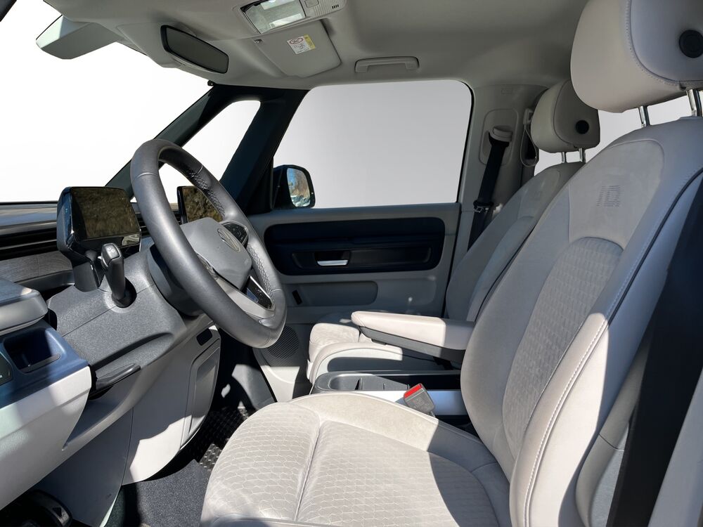 Akustischer Fußgängerschutz, Außensound (e-sound), Antennen-Diversity, Außenspiegel konvex, links und rechts, Außenspiegel schwarz lackiert und Türgriffe außen in Wagenfarbe, Bodenbelag: Teppich verstärkt, Fahrassistenz-System: Ausweich-Assistent und Abbiege-Assistent, Fenster im Lade-/FG-Raum: - feststehend, vorn links, Fenster im Lade-/FG-Raum: - feststehend, vorn rechts, Funkschlüssel (2), Fußraumbeleuchtung vorn und hinten, Gepäckraumabdeckung / Rollo, Heckklappe mit Verglasung, Heckscheibe, Heckscheibenwischer mit Intervallschaltung, HV-Batterie 82 kWh brutto / 77 kWh netto, Innenausstattung: Bedienelemente, Lenkrad und Einfassung Instrumente schwarz, Innenraumfilter: Aktiv Kombifilter, Insassen-Schutzsystem proaktiv, Karosserie/Aufbau: Bus, Ladekabel mit Typ 2-Stecker (16 A, Mode 3), Nichtraucher-Paket, Radstand 2989 mm, Radstand kurz, Scheibenwaschdüsen beheizt, Scheibenwischer mit Intervallschaltung, Schnellladevorrichtung (CCS-Ladedose), Schriftzug / Plakette D-Säule, Service-System: Intelligente Fahrzeugvernetzung (Car2X), Sicherheitsgurte vorn mit Gurtstraffer und Endbeschlagstraffer, höhenverstellbar, Sitzbezug / Polsterung: Stoff, Sitze im Fahrerhaus: Beifahrereinzelsitz, Sitze im Fahrerhaus: Fahrer- und Beifahrersitz höhenverstellbar, Sitze im Fahrerhaus: Fahrer- und Beifahrersitz mit Armlehnen innen, Sitze im Lade-/FG-Raum: 1.Reihe, 3er-Sitzbank, geteilt/klappbar, Sonnenblenden mit Spiegel (beleuchtet), Stoßfänger in Wagenfarbe, Umfeldbeleuchtung seitlich mit Projektionsfunktion, Verbandkasten und Warndreieck, Warnanlage für Sicherheitsgurte vorn und hinten, Zul. Gesamtgewicht 3,00 t, Ausstattungs-Paket: Design, Lichtleiste zwischen Scheinwerfer, Pedale Edelstahl, Ausstattungs-Paket: Infotainment, Lautsprecher (9), Mobiltelefon Schnittstelle Comfort mit kabelloser Ladefunktion, Navigationsfunktion Discover Pro, Lackierung: Sonderlackierung Candy-weiss uni, Steckdose 230V im FahrerhausWeitere Angebote: