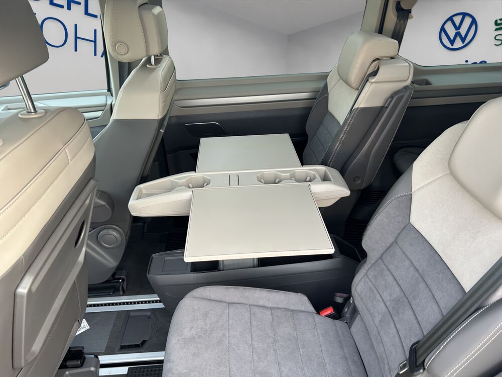 Akustischer Fußgängerschutz, Außensound (e-sound), Ausführung: Multivan, Außenspiegel konvex, links, Außenspiegel konvex, rechts, Außenspiegel schwarz lackiert, Batterie 40 Ah (LiFePO4), Blinkleuchten LED in Außenspiegel integriert, Bodenbelag im Lade-/Fahrgastraum Teppich, Bordwerkzeug und Reifen-Reparaturkit, Bremsbelagverschleissanzeige, Bremsscheiben vorn 17", Bremsscheiben vorn 17" (332 mm x 30 mm), Dekor-/Zierfolie Edition (Heckklappe und Schweller), Digital Cockpit Pro (Instrumentenanzeige Digital), Fahrassistenz-System: Ausweich-Assistent und Abbiege-Assistent, Fenster im Lade-/FG-Raum: - feststehend, vorn links, Fenster im Lade-/FG-Raum: - feststehend, vorn rechts, Freestyle, Funkschlüssel (2), Gepäckraum-Abtrennung / Trennnetz, Handschuhfach abschließbar, Handschuhfach beleuchtet, Heckleuchten dunkel getönt, Heckscheibe heizbar, mit Wischanlage, Innenausstattung: Dekoreinlagen Dark Silver brushed, Karosserie/Aufbau: Bus, Ladekabel mit Schukostecker (Mode 2), Laderaumunterteilung und Gepäcksicherungsnetz, Lautsprecher (8), Schlechtwetter-Licht, Mobile Online Dienste Vorbereitung We Connect und We Connect Plus, Nichtraucher-Paket, Radstand 3124 mm, Schadstoffarm nach Abgasnorm Euro 6e, Scheibenwischer mit Intervallschaltung, regulierbar, Sitze im Fahrerhaus: Beifahrersitz höhenverstellbar, Sitze im Fahrerhaus: Fahrersitz höhenverstellbar, Sonnenblenden mit Spiegel, Verbandkasten und Warndreieck, Warnanlage für Sicherheitsgurte vorn und hinten, Zierleiste zwischen Scheinwerfern: schwarz lackiert, Zul. Gesamtgewicht 2,95 t, Bulli-Plakette am Kotflügel, Fahrassistenz-Paket Advanced, Fahrassistenz-Paket: Travel Assist, Emergency Assist und Lane Assist, Fahrassistenz-System: Spurwechselassistent (Side Assist) mit Auspark-Assistent und Ausstiegswarnung, Service-System: Intelligente Fahrzeugvernetzung (Car2X), Frontscheibe heizbar, Fußmatten Fahrerhaus: Textil, Mobiltelefon Schnittstelle Comfort mit kabelloser Ladefunktion, Multifunktionstisch verschiebbar, Park-Paket Basic, Sitz-Paket: 7-Sitzer, 2-2-3 vis-a-vis (2 Einzelsitze, 2 Einzelsitze entgegen der Fahrtrichtung, 3 Einzelsitze), Verglasung hinten abgedunkelt (90 %)Fahrzeugbeschreibung