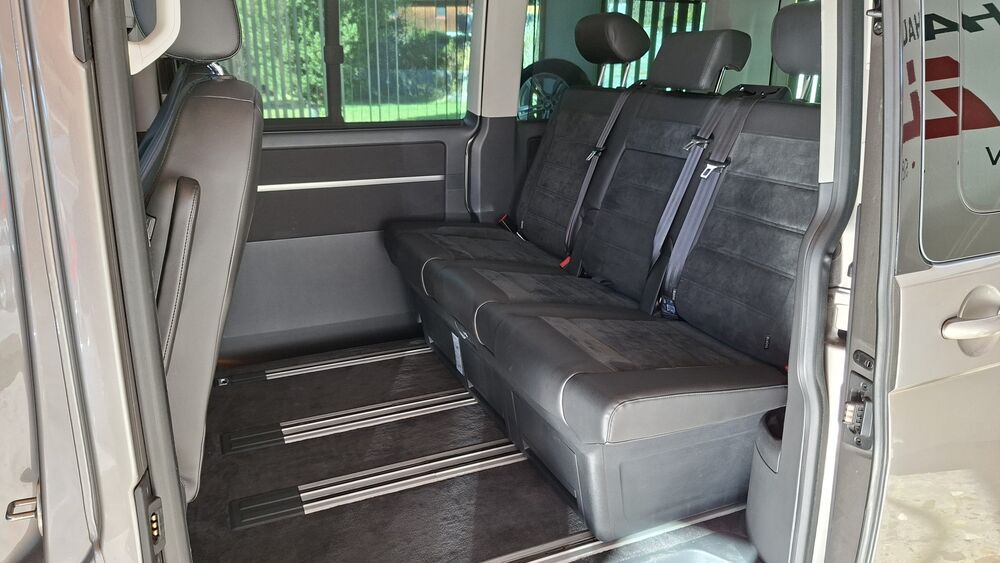 Armaturentafel Komfort, Ausstattungs-Paket Licht + Sicht, Automatische Fahrlichtschaltung, Außenspiegel konvex, links, Außenspiegel konvex, rechts, Außenspiegel und Türgriffe außen in Wagenfarbe, Außenspiegel in Wagenfarbe, Bodenbelag im Fahrerhaus: Teppich, Bodenbelag: Teppich verstärkt, Deaktivierungsschalter für Antriebs-Schlupfregelung (ASR), Doppelton - Fanfare, Fahrassistenz-System: Berganfahr-Assistent, Fahrwerk 17", Gepäckraumabdeckung / Rollo, Haltegriffe A-Säulen, Handschuhfach abschließbar, Heckklappe mit Verglasung, Heckscheibe heizbar, mit Wischanlage, Innenausstattung: Dekoreinlagen Dark Silver brushed (Dekorband Black Glossy), Innenbeleuchtung Multivan Komfort plus, Innenleuchten im Fahrerhaus: Leseleuchten vorn (2), Innenleuchten im Lade-/FG-Raum: Trittstufenleuchten, Karosserie/Aufbau: Bus, Kühlergrill schwarz lackiert, mit Chromleisten, Lenksäule (Lenkrad) verstellbar, Multifunktionsanzeige Premium (Farbdisplay), Pollenfilter, Radstand 3000 mm, Reifen-Reparaturkit, Schadstoffarm nach Abgasnorm Euro 6d-TEMP, Leuchtweitenregelung automatisch, Scheinwerfer-Reinigungsanlage (SRA), Scheibenwaschdüsen beheizt und Anzeige für Waschwasserstand, Scheibenwaschdüsen beheizt, SCR-System (AdBlue-Technologie), Sitze im Fahrerhaus: Beifahrersitz Komfort, Sitze im Fahrerhaus: Fahrer- und Beifahrersitz höhenverstellbar, Sitze im Fahrerhaus: Fahrersitz höhenverstellbar, Sitze im Fahrerhaus: Beifahrersitz höhenverstellbar, Sitze im Fahrerhaus: Fahrer- und Beifahrersitz mit Armlehnen vorn, Sitze im Fahrerhaus: Armlehnen, Fahrersitz, Sitze im Fahrerhaus: Armlehnen, Beifahrersitz, Sitze im Fahrerhaus: Fahrersitz Komfort, Sitze im Fahrerhaus: Lendenwirbelstützen Fahrer- und Beifahrersitz, Sitze im Fahrerhaus: Lendenwirbelstütze Fahrersitz, Sitze im Fahrerhaus: Lendenwirbelstütze Beifahrersitz, Sitze im Lade-/FG-Raum: 2.Reihe, 3er-Sitzbank, Sonnenblenden mit Spiegel (beleuchtet), Stoßfänger in Wagenfarbe, Verkleidung im Lade-/FG-Raum: Komfort, Zul. Gesamtgewicht 3,00 t, Anhänger-Stabilisierungs-Programm, Sprachverstärkung elektronisch, Multimedia-Schnittstelle 2 x USB (iPhone / iPod) mit AUX-IN, Volkswagen Media Control und App-Connect, Differentialsperre hinten, Dynamik-Fahrwerk, Fahrwerk tiefergelegt, Dämmglas-Paket, Frontscheibe Dämmglas, Fenster im Lade-/FG-Raum: Doppelverglasung, abgedunkelt, Verglasung hinten abgedunkelt, Fenster im Fahrerhaus: Seitenscheiben Doppelverglasung, Heckscheibe Doppelverglasung / Dämmglas mit Wischanlage, Fahrassistenz-System: Bergabfahr-Assistent, Fahrassistenz-System: Spurwechselassistent (Side Assist / Blind Spot Sensor), Fenster im Lade-/FG-Raum: - schiebbar vorn, feststehend hinten links, Fenster im Lade-/FG-Raum: - schiebbar vorn, feststehend hinten rechts, Freilaufkupplung für Doppelkupplungsgetriebe, Frontscheibe Dämmglas, heizbar, Funkschlüssel (4) klappbar, Fußmatten Fahrerhaus: Velours, Zuziehhilfe für Heckklappe, Dachverkleidung Himmel Komfort mit Luftausströmer, Kraftstofftank: 80 Ltr., Ladekantenschutz innen Kunststoff und auf der Stoßstange schwarz, Schalt-/Wählhebelgriff Leder, Mobiltelefon Schnittstelle Comfort, Multifunktionstisch, Raucher-Paket, Schubladen unter Dreiersitzbank und Abfallbehälter, Sitzbezug / Polsterung: Alcantara, Sitze im Lade-/FG-Raum: Kindersitze (2) integriert, 1. Sitzreihe, Sprachverstärkung elektronisch, Zusatzheizung (Warmwasser) mit Standheizfunktion und FernbedienungFahrzeugbeschreibung