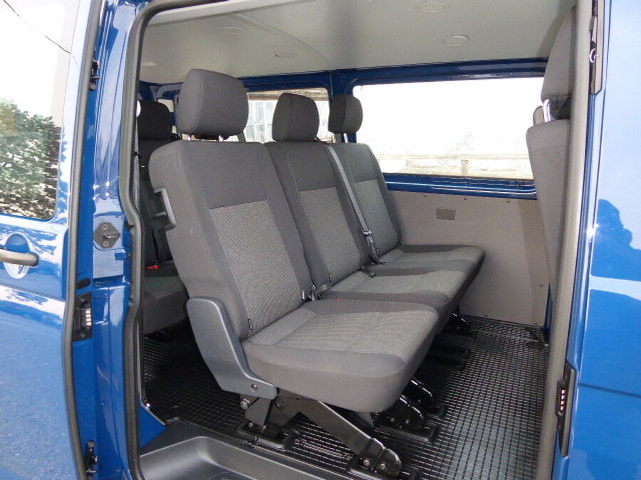 Außenspiegel konvex, links, Außenspiegel konvex, rechts, Bodenbelag im Fahrerhaus: Gummi, Bordwerkzeug, Fahrassistenz-System: Berganfahr-Assistent, Fenster im Lade-/FG-Raum: - feststehend, vorn und hinten links, Fenster im Lade-/FG-Raum: - feststehend, vorn und hinten rechts, Frontscheibe Verbundglas, Generator verstärkt, Handschuhfach abschließbar, Handschuhfach beleuchtet, Heckklappe mit Verglasung, Innenleuchten im Lade-/FG-Raum: LED, Innenraumfilter: Pollenfilter, Karosserie/Aufbau: Kombi Standard, Karosserievariante: Normaldach, Kraftstofftank: 70 Ltr., Kühlergrill mit Chromleisten, Lenksäule (Lenkrad) verstellbar, Nichtraucher-Paket, Radkappen, Radstand 3400 mm, Reifen-Reparaturkit, Schadstoffarm nach Abgasnorm Euro 6d, Sitzbezug / Polsterung: Stoff, Sitze im Fahrerhaus: Fahrersitz verstellbar, Stahlfelgen 6,5x16, Warnanlage für Sicherheitsgurte (Fahrer-/Beifahrerseite), Funkschlüssel (4) klappbar, Geschwindigkeits-Begrenzeranlage, Heckscheibe heizbar, mit Wischanlage, Notrufsystem, Schriftzug Transporter am Kotflügel, Sitz-Paket: 9-Sitzer, 3-3-3 (Fahrersitz und Beifahrerdoppelsitz, 2er-Sitzbank und Einzelsitz, 3er-Sitzbank), Sitze im Fahrerhaus: Beifahrerdoppelsitz mit Staufach (abschließbar) im Sitzkasten, Sitze im Lade-/FG-Raum: 1.Reihe, 2er-Sitzbank + 1 Einzelsitz, Sitze im Lade-/FG-Raum: 2.Reihe, 3er-Sitzbank (Wickelfeder), Sitze im Lade-/FG-Raum: Fahrgastraumvorbereitung I, Bodenbelag im Lade-/Fahrgastraum Gummi, Innenleuchten im Lade-/FG-Raum: Trittstufenleuchten, Zuheizer, Zul. Gesamtgewicht 3,20 t (inkl. Stahlfelgen 16" verstärkt)Fahrzeugbeschreibung