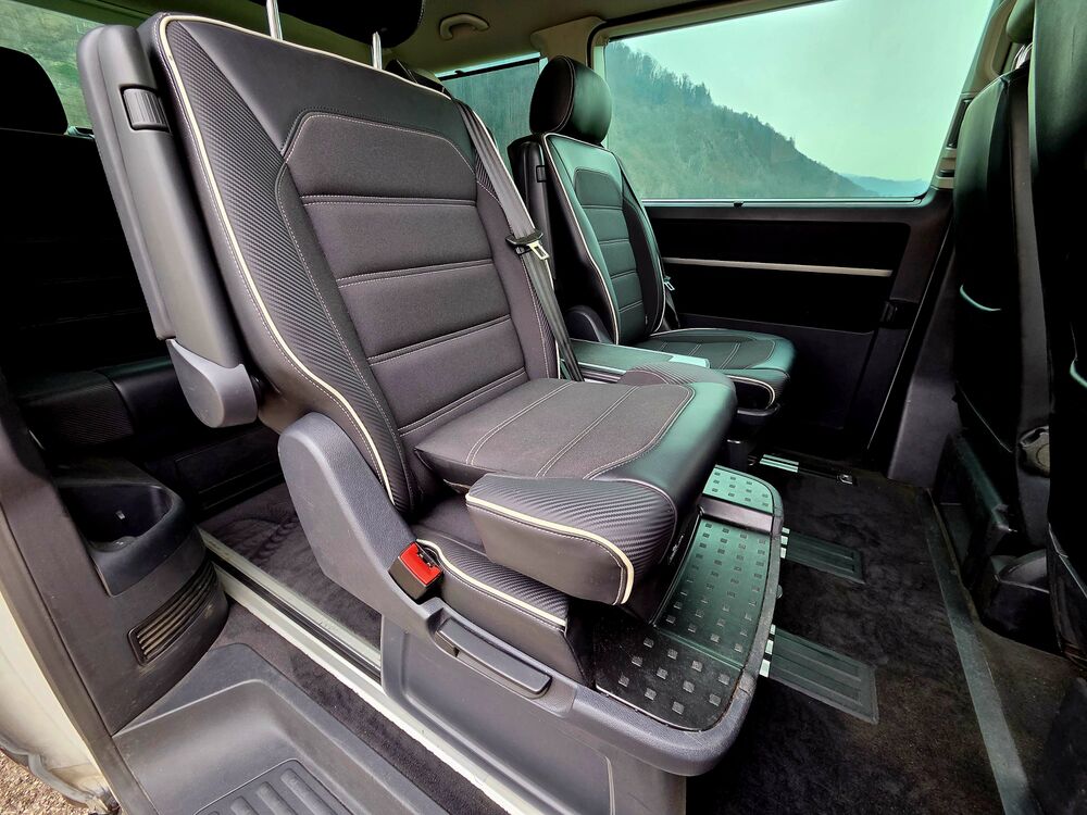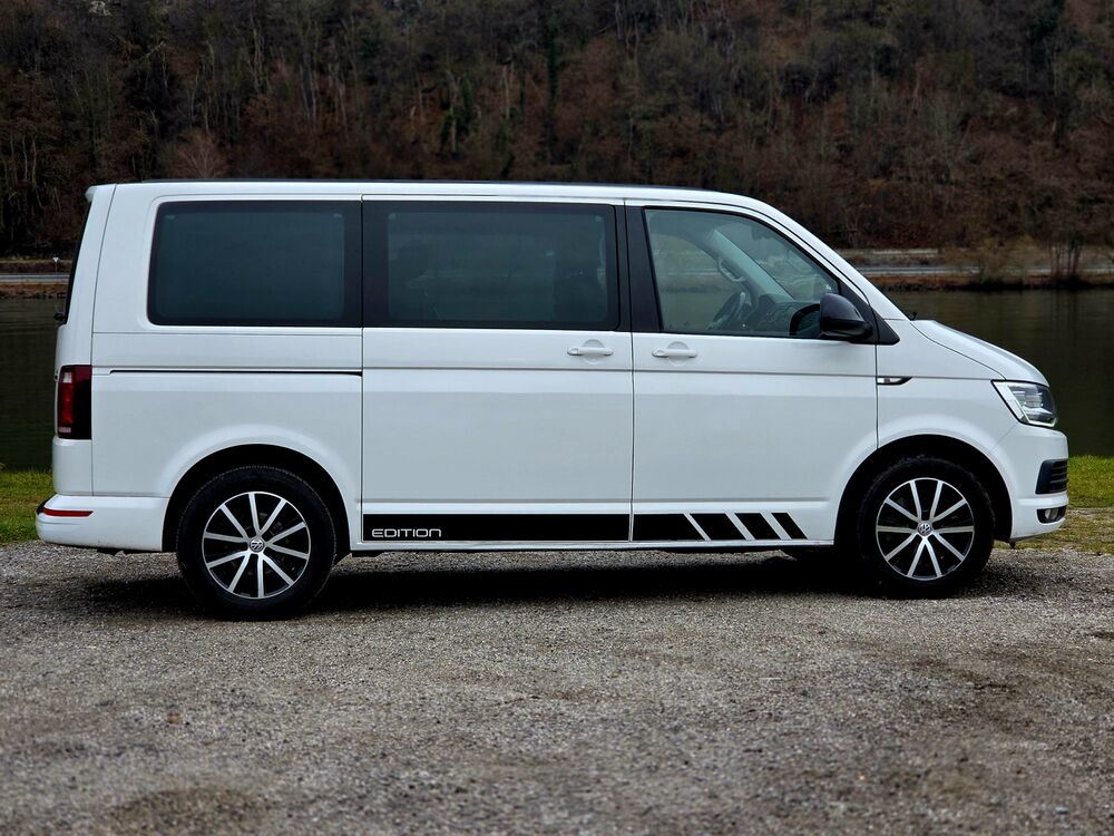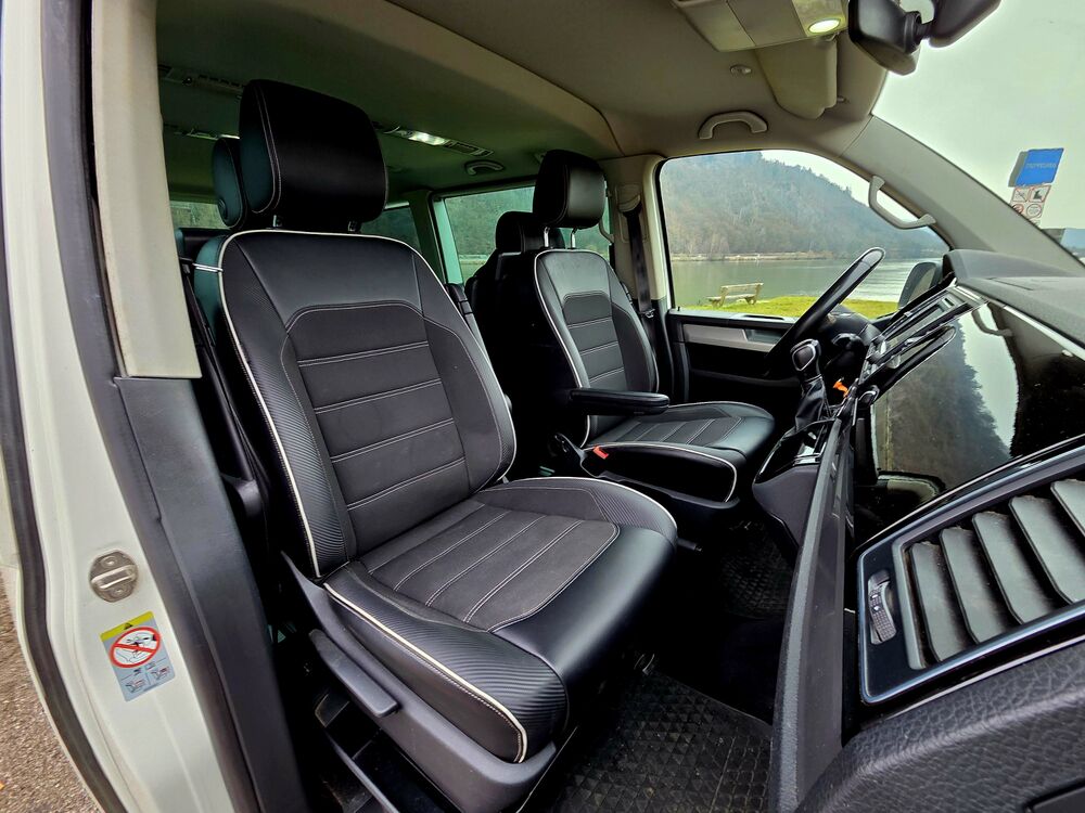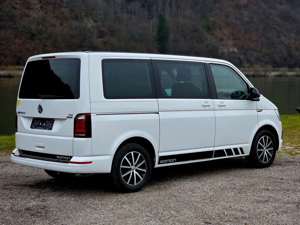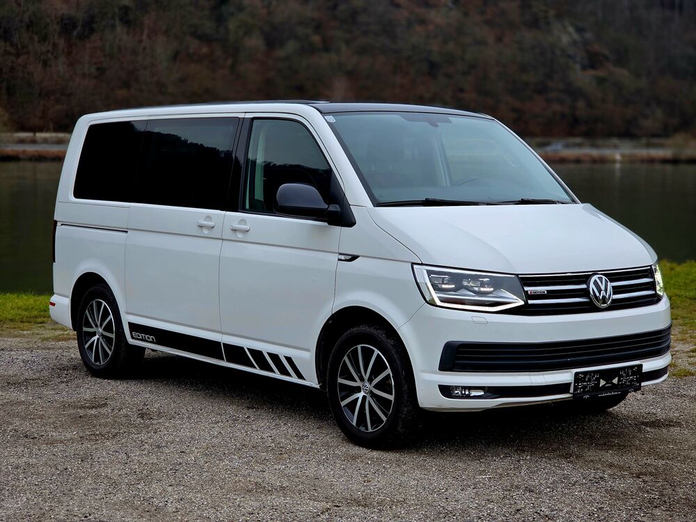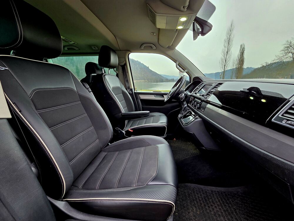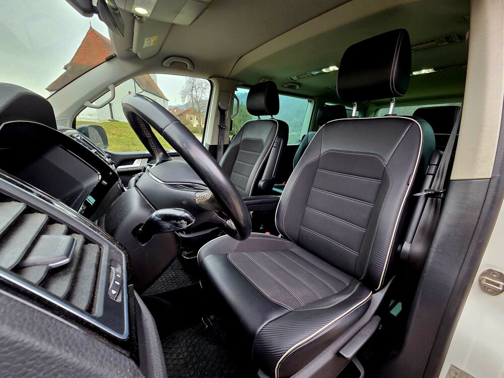 Armaturentafel Komfort, Ausstattungs-Paket Licht + Sicht, Automatische Fahrlichtschaltung, Außenspiegel asphärisch, links, Außenspiegel konvex, rechts, Außenspiegel und Türgriffe außen in Wagenfarbe, Außenspiegel in Wagenfarbe, Türgriffe außen in Wagenfarbe, Bodenbelag im Fahrerhaus: Teppich, Bodenbelag: Teppich verstärkt, Doppeltonfanfare, Fahrassistenz-System: Berganfahr-Assistent, Fahrwerk 17", Fenster im Lade-/FG-Raum: - feststehend, vorn und hinten links, Fenster im Lade-/FG-Raum: - feststehend, vorn und hinten rechts, Funkschlüssel (2) klappbar, Gepäckraumabdeckung / Rollo, Haltegriffe A-Säulen, Handschuhfach abschließbar, Heckklappe mit Verglasung, Heckscheibe heizbar, mit Wischanlage, Innenausstattung: Dekoreinlagen Dark Silver brushed (Dekorband Black Glossy), Innenleuchten im Fahrerhaus: Leseleuchten vorn (2), Innenleuchten im Lade-/FG-Raum: Trittstufenleuchten, Innenraumfilter: Pollenfilter, Karosserie/Aufbau: Bus, Kühlergrill schwarz lackiert, mit Chromleisten, Schalt-/Wählhebelgriff Leder, Lenksäule (Lenkrad) verstellbar, Multifunktionsanzeige Premium (Farbdisplay), Radstand 3000 mm, Reifen-Reparaturkit, Schadstoffarm nach Abgasnorm Euro 6, Leuchtweitenregelung automatisch, Scheinwerfer-Reinigungsanlage (SRA), Scheibenwaschdüsen beheizt und Anzeige für Waschwasserstand, Scheibenwaschdüsen beheizt, SCR-System (AdBlue-Technologie), Sitzbezug / Polsterung: Stoff, Sitze im Fahrerhaus: Beifahrersitz Komfort, Sitze im Fahrerhaus: Fahrer- und Beifahrersitz höhenverstellbar, Sitze im Fahrerhaus: Fahrersitz höhenverstellbar, Sitze im Fahrerhaus: Beifahrersitz höhenverstellbar, Sitze im Fahrerhaus: Fahrer- und Beifahrersitz mit Armlehnen vorn, Sitze im Fahrerhaus: Armlehnen, Fahrersitz, Sitze im Fahrerhaus: Armlehnen, Beifahrersitz, Sitze im Fahrerhaus: Fahrersitz Komfort, Sitze im Fahrerhaus: Lendenwirbelstützen Fahrer- und Beifahrersitz, Sitze im Fahrerhaus: Lendenwirbelstütze Fahrersitz, Sitze im Fahrerhaus: Lendenwirbelstütze Beifahrersitz, Sitze im Lade-/FG-Raum: 2.Reihe, 3er-Sitzbank, Sonnenblenden mit Spiegel (beleuchtet), Stoßfänger in Wagenfarbe, Verkleidung im Lade-/FG-Raum: Komfort, Zul. Gesamtgewicht 3,00 t, Sprachverstärkung elektronisch, Multimedia-Schnittstelle 2 x USB (iPhone / iPod) mit AUX-IN, Volkswagen Media Control und App-Connect, Dynamik-Fahrwerk, Fahrwerk tiefergelegt, Freilaufkupplung für Doppelkupplungsgetriebe, Frontscheibe Dämmglas, heizbar, Dachverkleidung Himmel Komfort mit Luftausströmer, Kraftstofftank: 80 Ltr., Mobiltelefon Schnittstelle Comfort, Multifunktionstisch, Raucher-Paket, Schubladen unter Dreiersitzbank und Abfallbehälter, Sitze im Lade-/FG-Raum: Kindersitz (1) integriert, 1. Sitzreihe, Sprachverstärkung elektronisch, Zuziehhilfe für HeckklappeFahrzeugbeschreibung