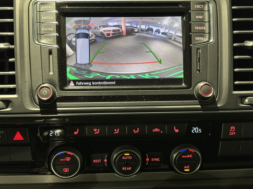 Anhängerkupplung (Kugelkopf abnehmbar), Anhänger-Stabilisierungs-Programm, Audio-Navigationssystem Discover Media Plus (Touchscreen-Farbdisplay), Radioempfang digital (DAB+), Sprachsteuerungs-System, Sprachverstärkung elektronisch, Multimedia-Schnittstelle 2 x USB (iPhone / iPod) mit AUX-IN, Volkswagen Media Control und App-Connect, Ausführung: BlueMotion Technology, Diebstahl-Warnanlage + Innenraumüberwachung / Abschleppschutz + Back-up-Horn, Dynamik-Fahrwerk, Fahrwerk tiefergelegt, Fahrassistenz-System: Autom. Distanzregelung (ACC) und Umfeldbeobachtungssystem (Front Assist, bis 210km/h), Fahrassistenz-System: Umfeldbeobachtungssystem (Front Assist) mit City-Notbremsfunktion, Fahrassistenz-System: City-Notbremsfunktion, Fahrassistenz-System: Einparkhilfe vorn und hinten mit Rückfahrkamera, Rückfahrkamera, Fahrassistenz-System: Fernlichtregulierung (Light Assist), Fahrwerk 17", Fenster im Lade-/FG-Raum: - schiebbar vorn, feststehend hinten links, Freilaufkupplung für Doppelkupplungsgetriebe, Funkschlüssel (4) klappbar, Klimaautomatik Climatronic (Fahrerhaus + Lade-/Fahrgastraum), Dachverkleidung Himmel Komfort mit Luftausströmer, Kraftstofftank: 80 Ltr., Mobiltelefon Schnittstelle Comfort und WLAN-Hotspot, WLAN-Hotspot, Raucher-Paket, Reserverad in Fahrbereifung, Schiebetür Lade-/Fahrgastraum links, Sitze im Fahrerhaus: Fahrer- und Beifahrersitz heizbar, Sprachsteuerungs-System mit Sprachverstärkung elektronisch, Zusatzheizung (Warmwasser) mit Standheizfunktion und Fernbedienung, 2. Batterie, Zuziehhilfe für Heckklappe, Zuziehhilfe Schiebetür links, Zuziehhilfe Schiebetür rechts, uvm....