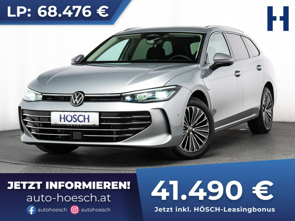 Traumhafter Jungwagen VW Passat Variant PHEV Elegance Aut. mit umfangreicher Ausstattung zum HÖSCH-Vorteilspreis.Preis inkl. HÖSCH Leasingbonus: 41.490 €