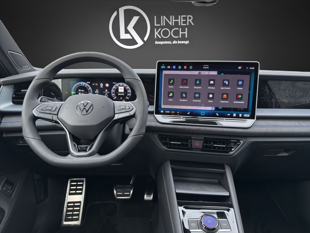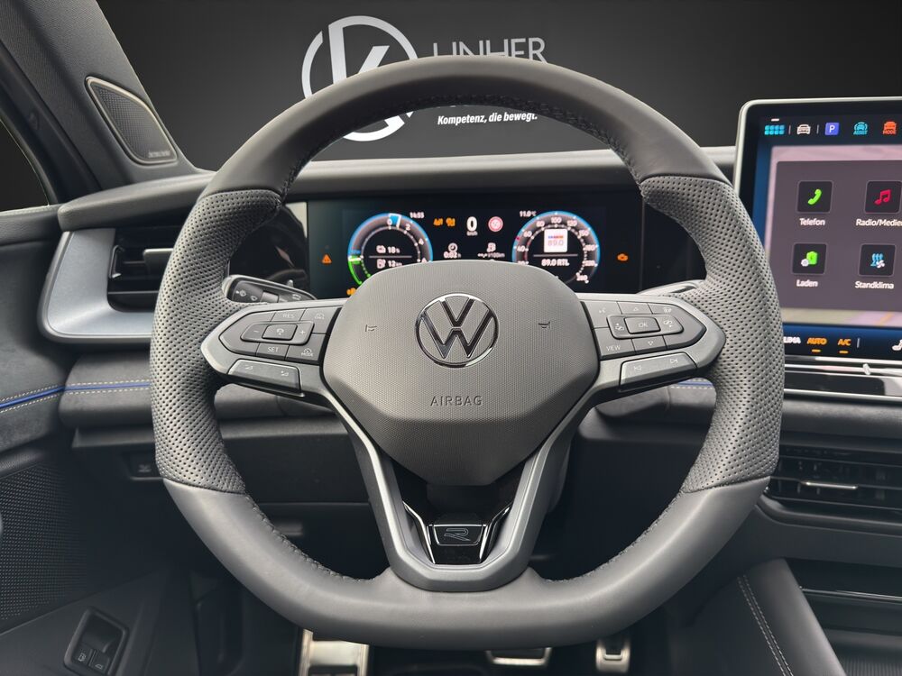 Akustischer Fußgängerschutz, Außensound (e-sound), Navigationsfunktion, Ausstattung R-Line, Außenspiegel mit Umfeldleuchte und Projektionsfunktion, Bordwerkzeug und Wagenheber, Dachhimmel Stoff, schwarz, Digital Cockpit PRO (Instrumentenanzeige digital), Einstiegsleisten vorn (Aluminium), Fahrerlebnisschalter inkl. Innenraumerlebnis Atmospheres, Fußgänger-Schutzmaßnahmen erweitert, Fußmatten Textil, Gepäckraumboden höhenverstellbar, Innenausstattung: Dekor-Set R-Line, durchleuchtet, Ladekabel mit Schukostecker, Ladekabel mit Typ 2-Stecker (Mode 3, 16 A), Lautsprecher (8), Lendenwirbelstützen vorn, pneumatisch verstellbar, Mittelkonsole Standard, Parkbremse elektrisch mit Auto-Hold-Funktion, Pedale Edelstahl, Radstand Standard, Reifen-Reparaturkit (Tire Mobility Set), Schadstoffarm nach Abgasnorm Euro 6e, Sitzbezug / Polsterung: Stoff R-Line, Sitze vorn höhenverstellbar, ErgoActive Sitz links, Sitze: Komfortsitze vorn, Sitzlehne vorn rechts umklappbar, Sonnenblenden mit Spiegel (beleuchtet), Steckdose 12V im Koffer-/Laderaum, Steckdose 230V im Gepäckraum, 12V-Anschluß Mittelkonsole vorn, Verbandkasten, Warndreieck und Warnweste(n), Vorbereitung für Alkohol-Wegfahrsperre (Alcolock), VW Logo vorn / hinten, Leiste zwischen Scheinwerfer / Rückleuchten beleuchtet mit Animation, Warnanlage für Sicherheitsgurte vorn und hinten, Assistenz-Paket IQ.DRIVE, Fahrassistenz-Paket: Travel Assist, Emergency Assist und Lane Assist, Insassen-Schutzsystem proaktiv, Design-Paket Black Style, Außenspiegel schwarz lackiert, Stoßfänger R-Line mit Zierleisten schwarz glänzend, Innenausstattung: Designelemente in Schwarz / Dark Anodized, Family-Paket, Kindersicherung im Fahrgastraum elektr. betätigt, Kindersicherung im Fahrgastraum, Gepäckraum-Abtrennung (Netztrennwand), Infotainment-Paket Discover Pro Max, Sprachassistent IDA und elektronische Sprachverstärkung, Mobiltelefon Schnittstelle Comfort mit kabelloser Ladefunktion für 2 Geräte (15 Watt), Navigationsfunktion, Seitenscheiben und Heckscheibe Verbundglas, hinten abgedunkelt, Seitenscheiben geräuschdämmend (Verbundglas), Reserverad als Notrad (gewichts- und platzsparend)Fahrzeugbeschreibung