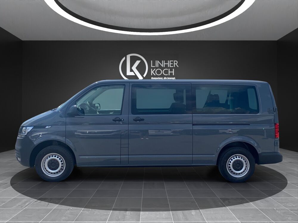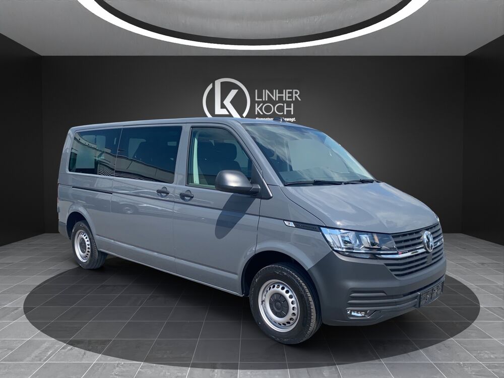 Außenspiegel konvex, links, Außenspiegel konvex, rechts, Bodenbelag im Fahrerhaus: Gummi, Bordwerkzeug, Deaktivierungsschalter für Antriebs-Schlupfregelung (ASR), Fahrassistenz-System: Berganfahr-Assistent, Fenster im Lade-/FG-Raum: - feststehend, vorn und hinten links, Fenster im Lade-/FG-Raum: - feststehend, vorn und hinten rechts, Frontscheibe Verbundglas, Funkschlüssel (2) klappbar, Generator verstärkt, Handschuhfach abschließbar, Handschuhfach beleuchtet, Innenleuchten im Lade-/FG-Raum: LED, Innenraumfilter: Pollenfilter, Karosserie/Aufbau: Kombi, Karosserievariante: Normaldach, Kraftstofftank: 70 Ltr., Kühlergrill mit Chromleisten, Lenksäule (Lenkrad) verstellbar, Nichtraucher-Paket, Radstand 3400 mm, Schadstoffarm nach Abgasnorm Euro 6d, Sitzbezug / Polsterung: Stoff, Stahlfelgen 7x17, Warnanlage für Sicherheitsgurte (Fahrer-/Beifahrerseite), Anhänger-Stabilisierungs-Programm, Multimedia-Schnittstelle 2 x USB (Typ C) vorn, Mobile Online Dienste App-Connect, Ausstattungs-Paket Licht + Sicht, Automatische Fahrlichtschaltung, Ausstattungs-Paket: Komfort-Paket, Haltegriffe A-Säulen, Sonnenblenden mit Spiegel, Steckdosen (12V-Anschluß) im Fahrerhaus (2 Stück), Abfallbehälter, Fahrassistenz-System: Berganfahr-/Abfahr-Assistent, Frontscheibe heizbar, Fußmatten Fahrerhaus: Gummi, Geschwindigkeits-Begrenzeranlage, Heckflügeltüren mit Verglasung, Heckscheibe heizbar, mit Wischanlage, Notrufsystem, Reserverad in Fahrbereifung, Scheibenwaschdüsen beheizt und Anzeige für Waschwasserstand, Scheibenwaschdüsen beheizt, Anzeige für Waschwasserstand, Schriftzug Transporter am Kotflügel, Sitz-Paket: 9-Sitzer, 3-3-3 (Fahrersitz und Beifahrerdoppelsitz, 3 Einzelsitze, 3er-Sitzbank), Sitze im Fahrerhaus: Beifahrerdoppelsitz mit Staufach (abschließbar) im Sitzkasten, Sitze im Lade-/FG-Raum: 1.Reihe, 3 Einzelsitze, Sitze im Lade-/FG-Raum: 2.Reihe, 3er-Sitzbank (Wickelfeder), Sitze im Lade-/FG-Raum: Modulares Sitzbefestigungssystem für 2./3.Sitzreihe, Sitze im Fahrerhaus: Fahrersitz höhenverstellbar, Sitze im Fahrerhaus: Lendenwirbelstütze Fahrersitz, Sitze im Lade-/FG-Raum: Fahrgastraumvorbereitung I, Bodenbelag im Lade-/Fahrgastraum Gummi, Innenleuchten im Lade-/FG-Raum: Trittstufenleuchten, Zuheizer, Verglasung hinten abgedunkelt, Zul. Gesamtgewicht 3,20 t (inkl. Stahlfelgen 16" verstärkt)Fahrzeugbeschreibung
