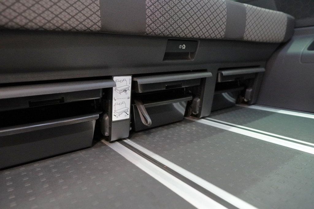 Schubladen unter Dreiersitzbank und Abfallbehälter