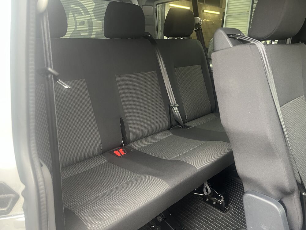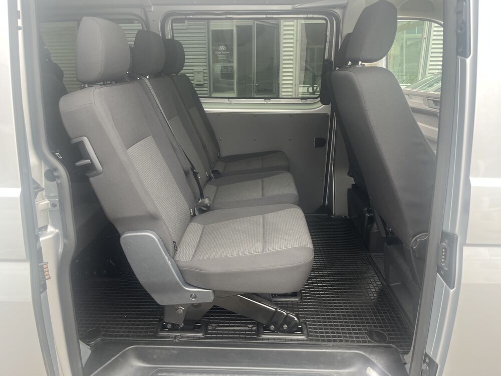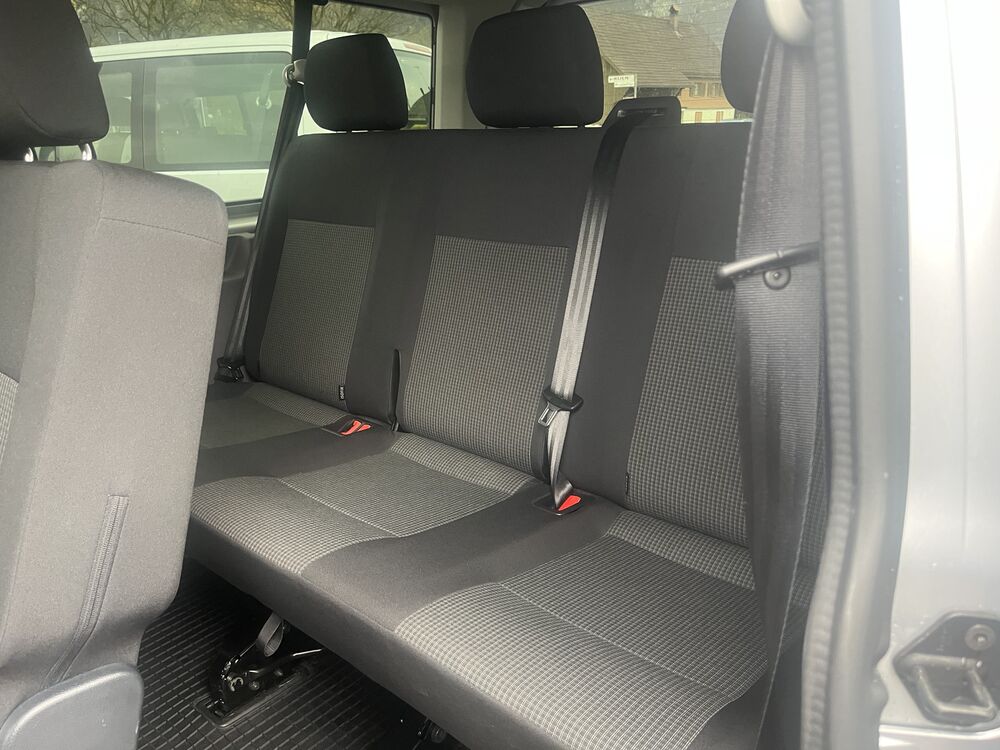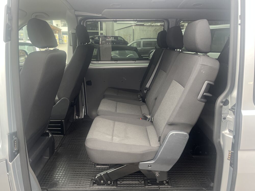 Außenspiegel konvex, links, Außenspiegel konvex, rechts, Bodenbelag im Fahrerhaus: Gummi, Bordwerkzeug, Deaktivierungsschalter für Antriebs-Schlupfregelung (ASR), Fahrassistenz-System: Berganfahr-Assistent, Fenster im Lade-/FG-Raum: - feststehend, vorn und hinten links, Fenster im Lade-/FG-Raum: - feststehend, vorn und hinten rechts, Frontscheibe Verbundglas, Funkschlüssel (2) klappbar, Generator verstärkt, Handschuhfach abschließbar, Handschuhfach beleuchtet, Heckklappe mit Verglasung, Innenleuchten im Lade-/FG-Raum: LED, Innenraumfilter: Pollenfilter, Karosserie/Aufbau: Kombi Standard, Karosserievariante: Normaldach, Kindersicherung elektr. betätigt, Kraftstofftank: 70 Ltr., Kühlergrill mit Chromleisten, Lenksäule (Lenkrad) verstellbar, Nichtraucher-Paket, Radkappen, Radstand 3400 mm, Reifen-Reparaturkit, Schadstoffarm nach Abgasnorm Euro 6d, Sitzbezug / Polsterung: Stoff, Sitze im Fahrerhaus: Beifahrersitz verstellbar, Stahlfelgen 6,5x16, Warnanlage für Sicherheitsgurte (Fahrer-/Beifahrerseite), 2. Batterie mit Batterieüberwachung, Armaturentafel mit Zusatzkonsole, Multimedia-Schnittstelle 2 x USB (Typ C) vorn, Mobile Online Dienste App-Connect Wired und Wireless, Befestigungsschienen für Dachträger, Geschwindigkeits-Begrenzeranlage, Heckscheibe heizbar, mit Wischanlage, Multifunktionsanzeige Plus, Notrufsystem, Leuchtweitenregelung automatisch, Schriftzug Transporter am Kotflügel, Sitz-Paket: 8-Sitzer, 2-3-3 (2 Einzelsitze, 3 Einzelsitze, 3er-Sitzbank), Sitze im Lade-/FG-Raum: 1.Reihe, 3 Einzelsitze, Sitze im Lade-/FG-Raum: 2.Reihe, 3er-Sitzbank, Sitze im Lade-/FG-Raum: Modulares Sitzbefestigungssystem für 2./3.Sitzreihe, Sitze im Fahrerhaus: Fahrersitz höhenverstellbar, Sitze im Fahrerhaus: Lendenwirbelstütze Fahrersitz, Sitze im Lade-/FG-Raum: 2.Reihe, 3er-Sitzbank (Wickelfeder), Sitze im Lade-/FG-Raum: Fahrgastraumvorbereitung I, Bodenbelag im Lade-/Fahrgastraum Gummi, Innenleuchten im Lade-/FG-Raum: Trittstufenleuchten, Zuheizer, Zul. Gesamtgewicht 3,20 t (inkl. Stahlfelgen 16" verstärkt), Zusatzheizung (Warmwasser) mit Standheizfunktion programmierbarFahrzeugbeschreibung