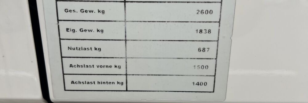 Zul. Gesamtgewicht 2, 60 t