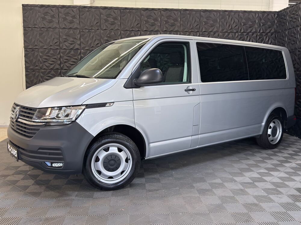 Außenspiegel konvex, links, Außenspiegel konvex, rechts, Bodenbelag im Fahrerhaus: Gummi, Bordwerkzeug, Fahrassistenz-System: Berganfahr-Assistent, Fenster im Lade-/FG-Raum: - feststehend, vorn und hinten links, Fenster im Lade-/FG-Raum: - feststehend, vorn und hinten rechts, Frontscheibe Verbundglas, Funkschlüssel (2) klappbar, Generator verstärkt, Handschuhfach abschließbar, Handschuhfach beleuchtet, Heckklappe mit Verglasung, Innenleuchten im Lade-/FG-Raum: LED, Innenraumfilter: Pollenfilter, Karosserie/Aufbau: Kombi Standard, Karosserievariante: Normaldach, Kraftstofftank: 70 Ltr., Kühlergrill mit Chromleisten, Lenksäule (Lenkrad) verstellbar, Nichtraucher-Paket, Radstand 3400 mm, Reifen-Reparaturkit, Schadstoffarm nach Abgasnorm Euro 6d, Sitze im Fahrerhaus: Beifahrersitz verstellbar, Warnanlage für Sicherheitsgurte (Fahrer-/Beifahrerseite), Ausstattungs-Paket Licht + Sicht Plus, Automatische Fahrlichtschaltung, Ausstattungs-Paket: Komfort-Paket Plus, Haltegriffe A-Säulen, Sitzbezug / Polsterung: Stoff Bricks, Sitze im Fahrerhaus: Fahrersitz höhenverstellbar, Sitze im Fahrerhaus: Lendenwirbelstütze Fahrersitz, Sonnenblenden mit Spiegel, Steckdosen (12V-Anschluß) im Fahrerhaus (2 Stück), Abfallbehälter, Bodenbelag im Lade-/Fahrgastraum Gummi, Innenleuchten im Lade-/FG-Raum: Trittstufenleuchten, Heckscheibe heizbar, mit Wischanlage, Schriftzug Transporter am Kotflügel, Sitz-Paket: 9-Sitzer, 2-2-2-3 (2 Einzelsitze, 2er-Sitzbank, 2er-Sitzbank, 3er-Sitzbank), Sitze im Lade-/FG-Raum: 1.Reihe, 2er-Sitzbank, Sitze im Lade-/FG-Raum: 2.Reihe, 2er-Sitzbank, Sitze im Lade-/FG-Raum: 3.Reihe, 3er-Sitzbank, Sitze im Fahrerhaus: Fahrer- und Beifahrersitz mit Armlehnen vorn, Sitze im Fahrerhaus: Armlehnen, Fahrersitz, Sitze im Fahrerhaus: Armlehnen, Beifahrersitz, Sitze im Fahrerhaus: Lendenwirbelstützen Fahrer- und Beifahrersitz, Verglasung hinten abgedunkelt, Winterbereifung zusätzlich (Kundenangabe erforderlich), Zul. Gesamtgewicht 3,20 t (inkl. Stahlfelgen 17" verstärkt), Zusatzheizung (Warmwasser) mit Standheizfunktion programmierbar, Zuziehhilfe für HeckklappeFahrzeugbeschreibung